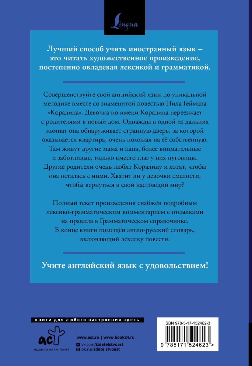 — «Коралина = Coraline: читаем в оригинале с комментарием» Гейман Н.