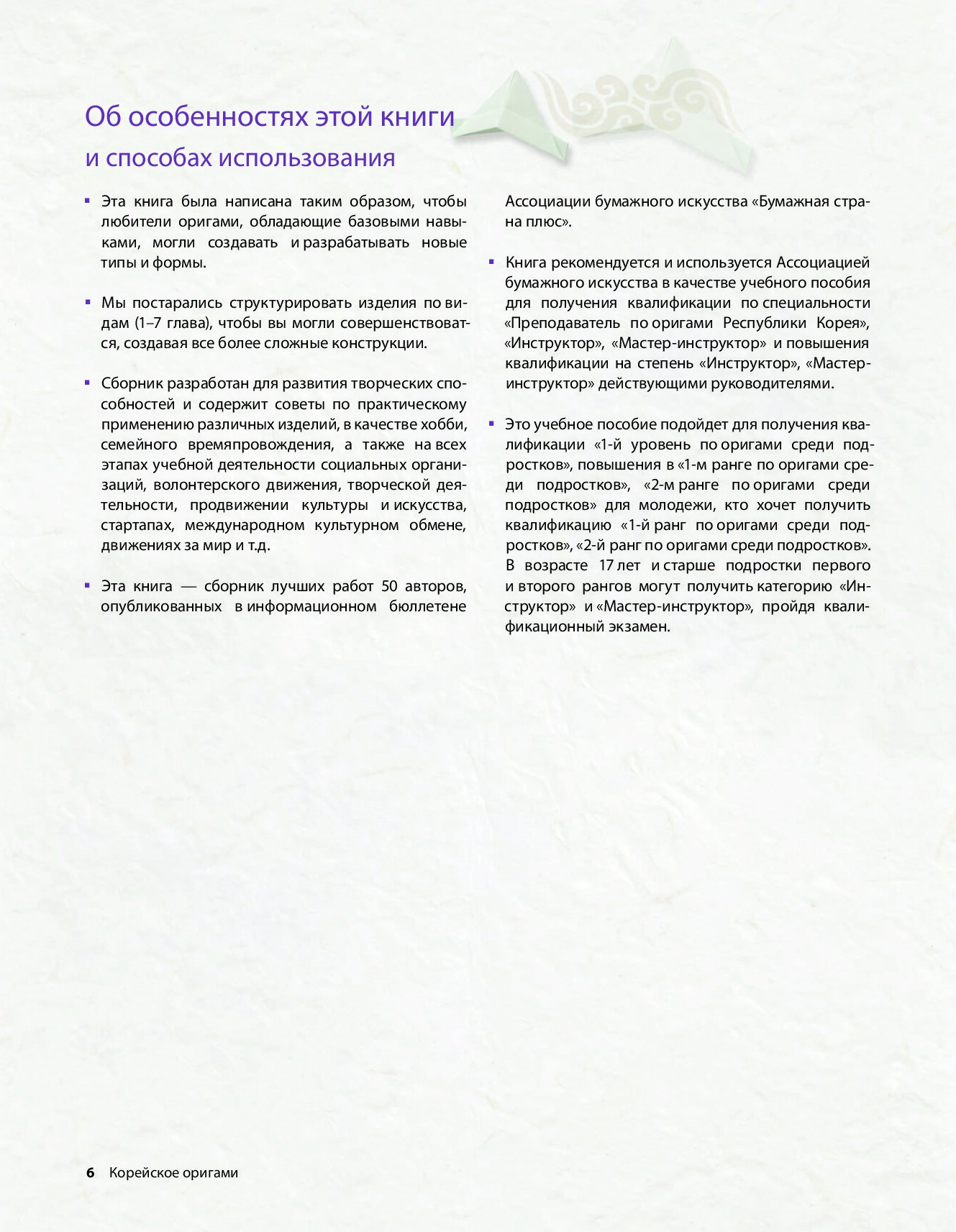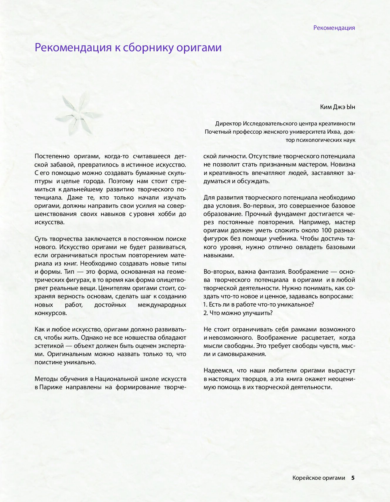 Это не просто сборник интересных бумажных моделей, а учебник Ассоциации бумажного искусства Сеула для получения официальной квалификации корейских мастеров. Изучив и воплотив на практике все шаги и авторские инструкции, вы станете настоящим мастером оригами! И все это легко, весело, получая удовольствие от процесса и от результата.