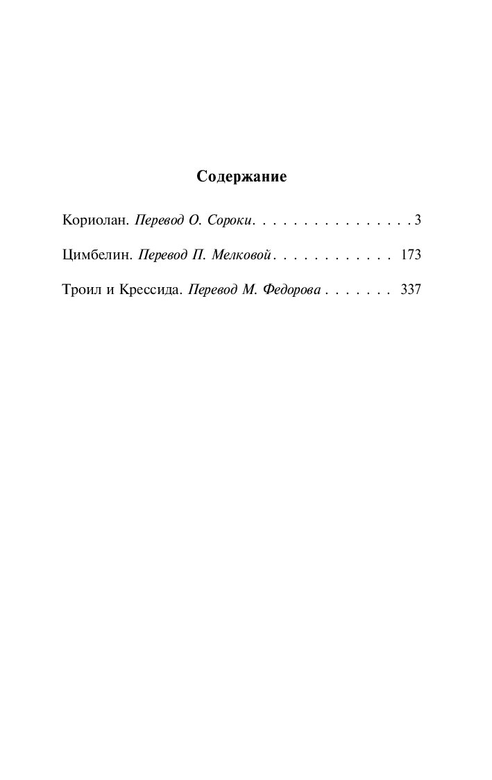 — Сразу три произведения Уильяма Шекспира под одной обложкой. В данное издание вошли пьесы «Кориолан», «Цимбелин» и «Троил и Крессида», которые относятся к позднему периоду творчества автора.