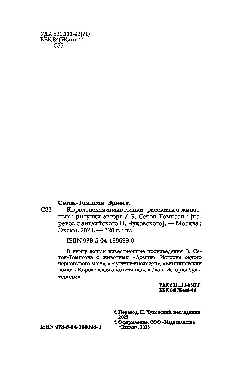 — «Королевская аналостанка. Рассказы о животных (с крупными буквами, рис. автора)_Д» Сетон-Томпсон Э.