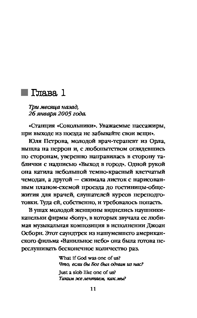 2005 год. Молодой врач из Орла Юля Петрова приезжает в Москву. Здесь ей предстоит пройти курсы повышения квалификации и заодно набраться самых приятных впечатлений от столицы. Но одна встреча кардинально меняет все…