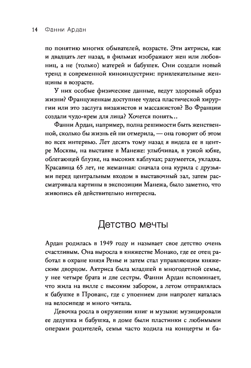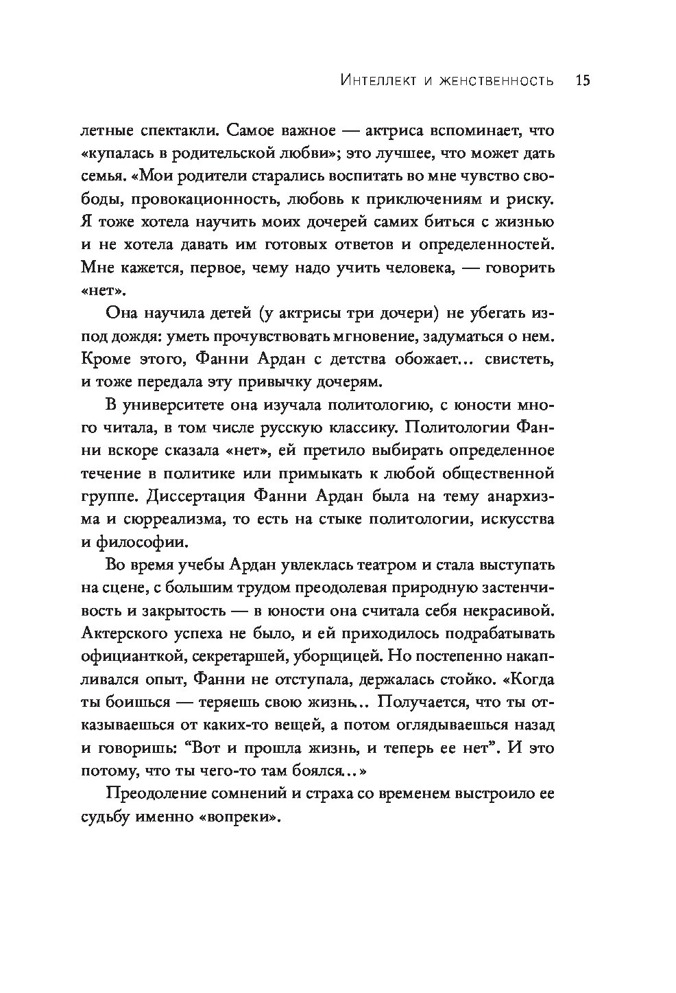 - Фанни Ардан, интеллектуалка с дипломом политолога и страстная поклонница русской литературы, поддерживает остроту ума и свежесть памяти, разучивая новые этюды на фортепиано.