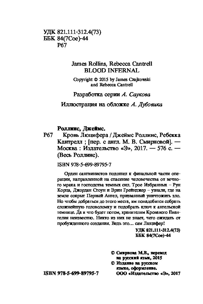 —Книга «Кровь Люцифера» Роллинс Дж., Кантрелл Р.