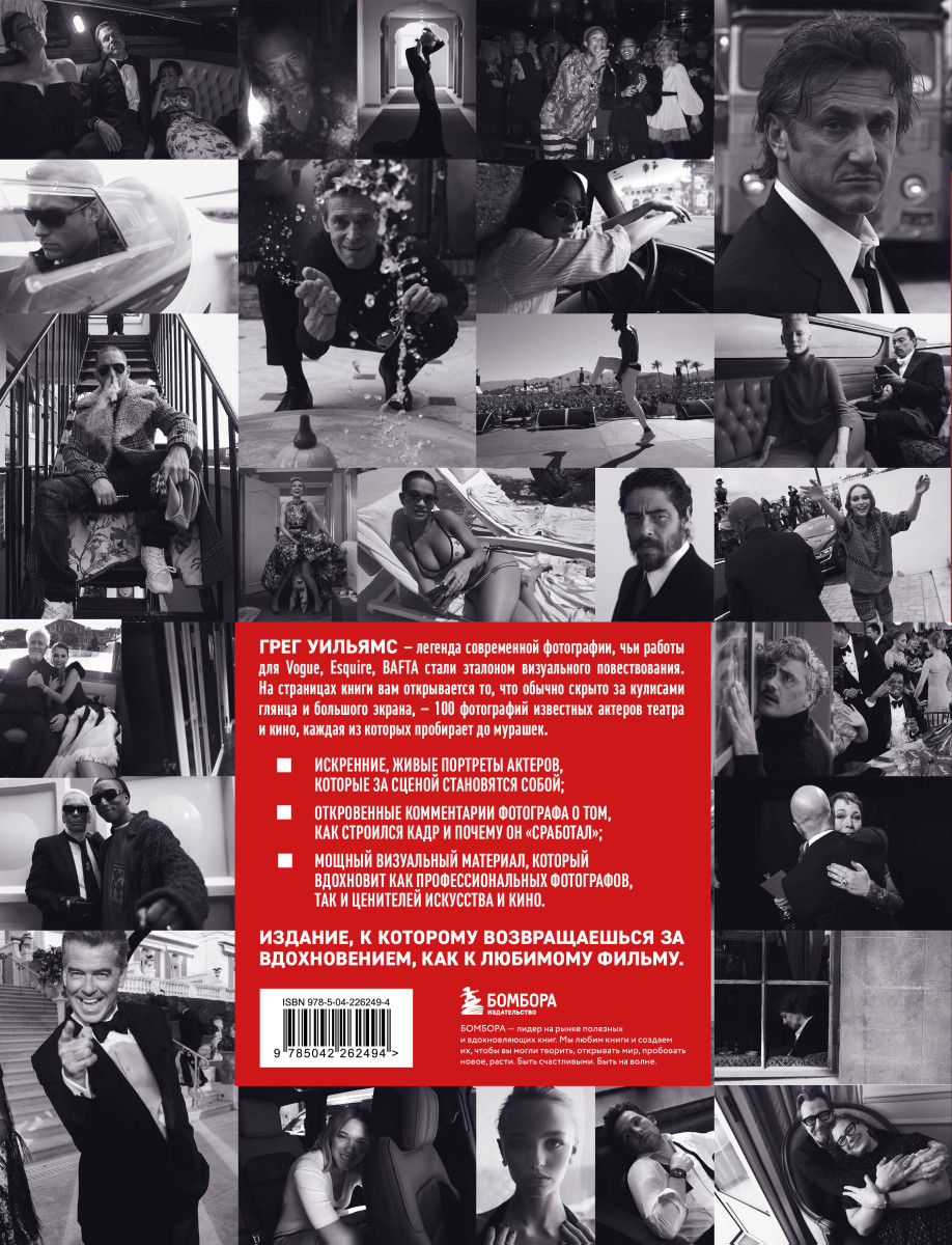 Хотите увидеть, как выглядят великие актеры вне сцены? Эта книга — настоящий backstage, только в фотографии. Легендарный фотограф Грег Уильямс рассказывает, как создаются шедевры, — как настраивать камеру при недостаточном количестве света или в движении, когда лучше снимать людей во время больших мероприятий, как поймать "тот самый кадр". Благодаря этой книге вы сможете увидеть потрясающе красивые снимки Зендаи, Кендалл Дженнер, Брэда Питта, Хоакина Феникса, Леди Гаги, Дуа Липы, Роберта Дауни-Младшего и других знаменитостей, и узнаете про них то, что было скрыто от наших глаз, но удалось разглядеть Грегу Уильямсу через объектив его фотоаппарата.