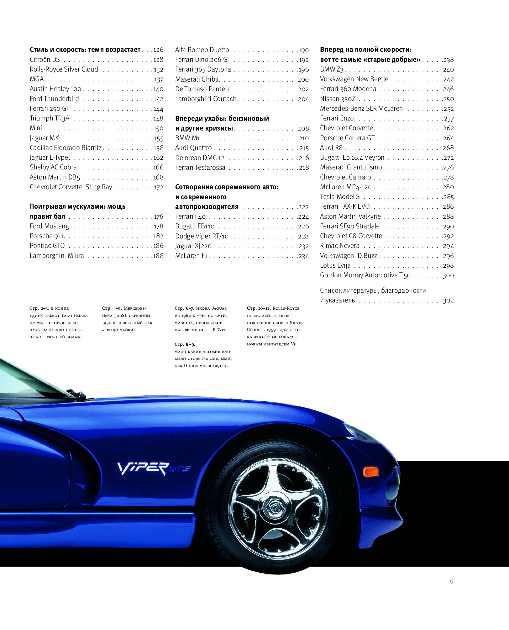 Внутри — редчайшие фотографии и чертежи, культовые модели от СТ40 до Veyron, детали, которые известны лишь посвящённым, и легенды, ставшие иконами — от Стива МакКуина до Джеймса Бонда.