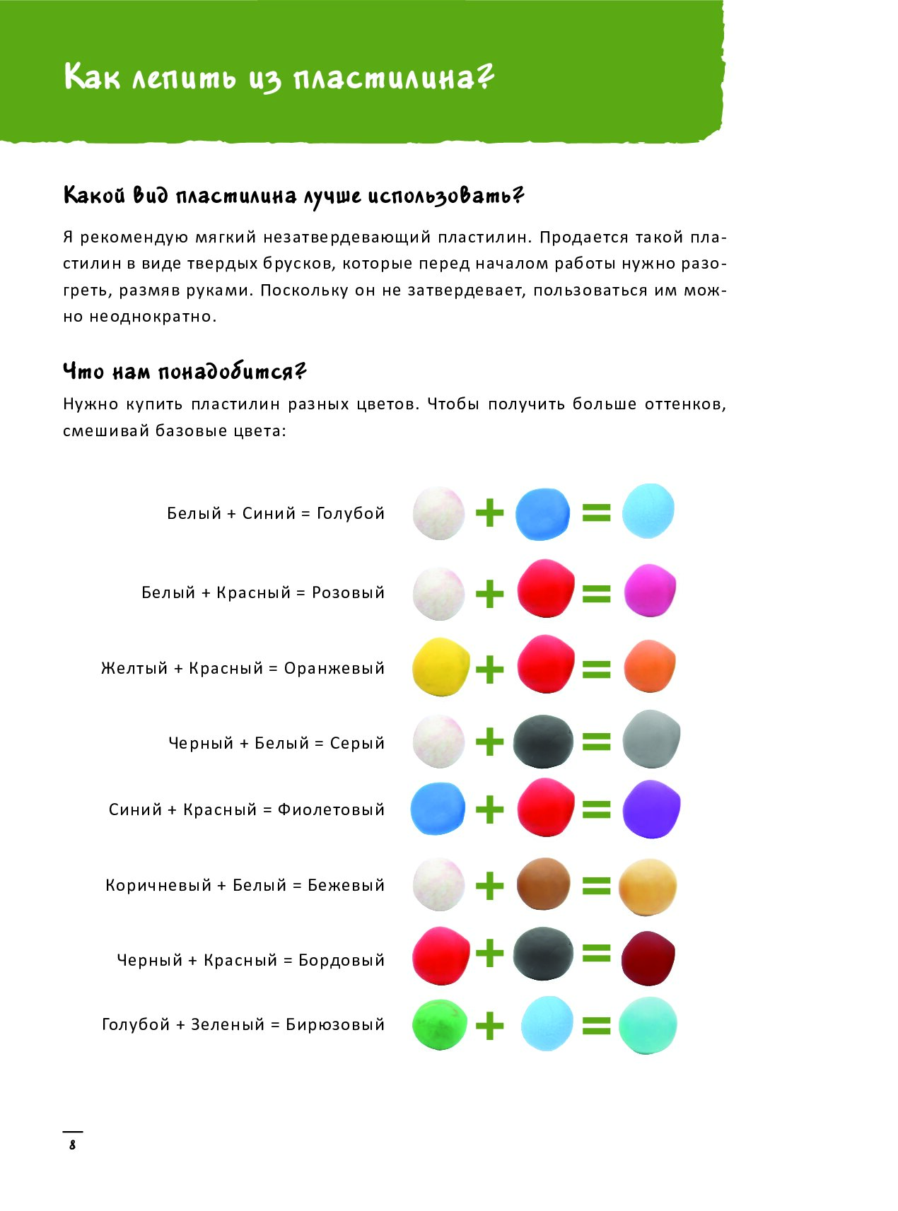 Уверены, что да! Ведь пластилин — очень мягкий, яркий, приятный на ощупь материал, который может принимать абсолютно любую форму. Лепка из пластилина развивает мелкую моторику и фантазию ребенка, но что делать, если бурые мишки и серые зайчики уже наскучили малышу? Пусть ваш малыш станет создателем и героем собственной сказки! С этой книгой из самых простых форм — шариков, колбасок и капелек — в руках малыша вдруг оживет целый мир: Баба Яга в избушке на курьих ножках, гномы, единороги и лесные ящерицы, древние говорящие деревья и даже волшебное озеро!