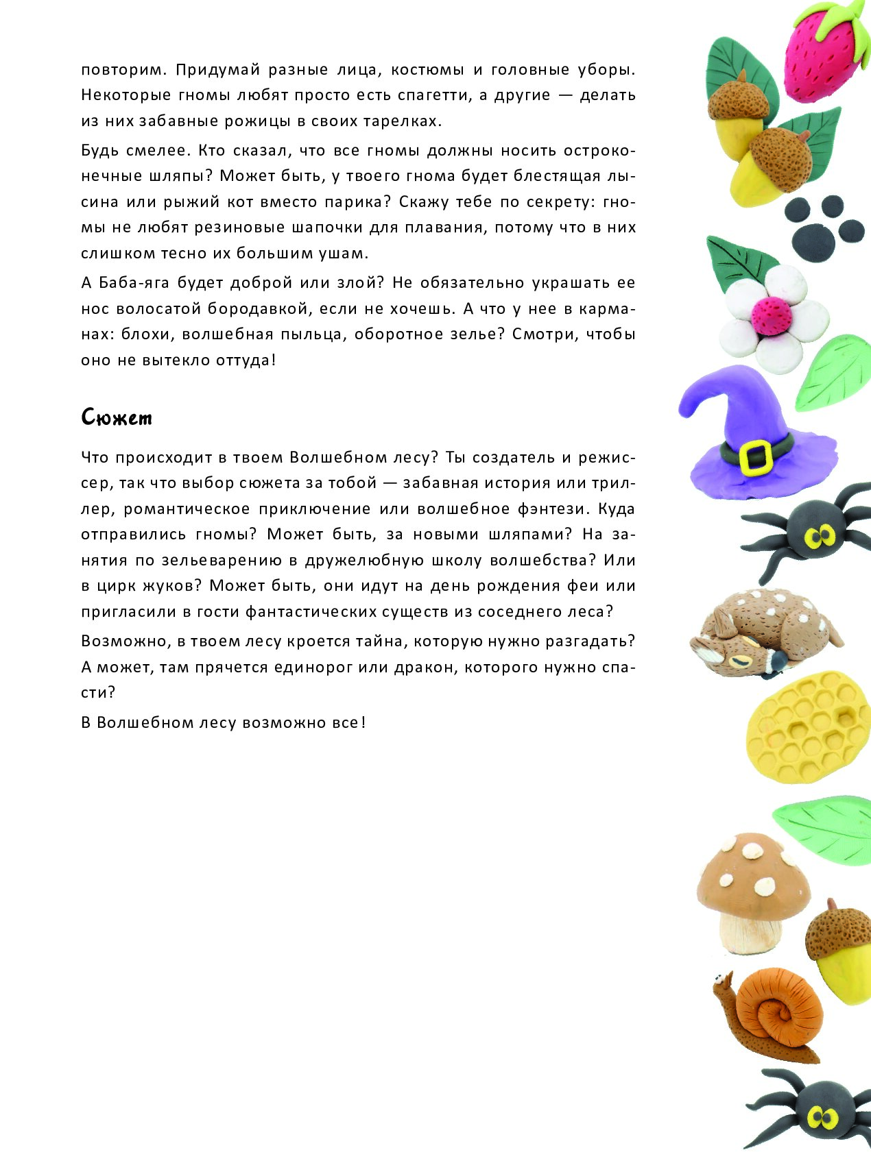 «Лес чудес» — это интерактивная книга, которая научит малыша создавать собственные сюжеты. Дайте волю фантазии — можно придумать забавные имена своим гномам, смастерить указатели на неведомые дорожки, и даже научиться лепить любимые угощения для сказочных героев.