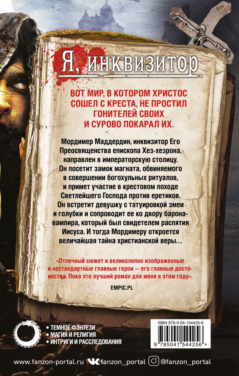 Мордимер Маддердин, инквизитор Его Преосвященства епископа Хез-хезрона, направлен в императорскую столицу. Он посетит замок магната, обвиняемого в совершении богохульных ритуалов, и примет участие в крестовом походе Светлейшего Господа против еретиков. Он встретит девушку с татуировкой змеи и голубки и сопроводит ее ко двору барона-вампира, который был свидетелем распятия Иисуса. И тогда Мордимеру откроется величайшая тайна христианской веры…