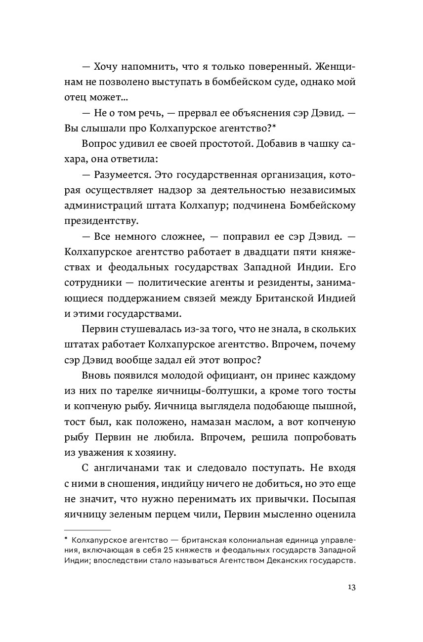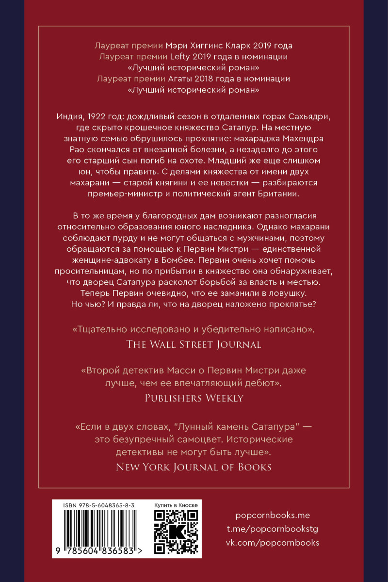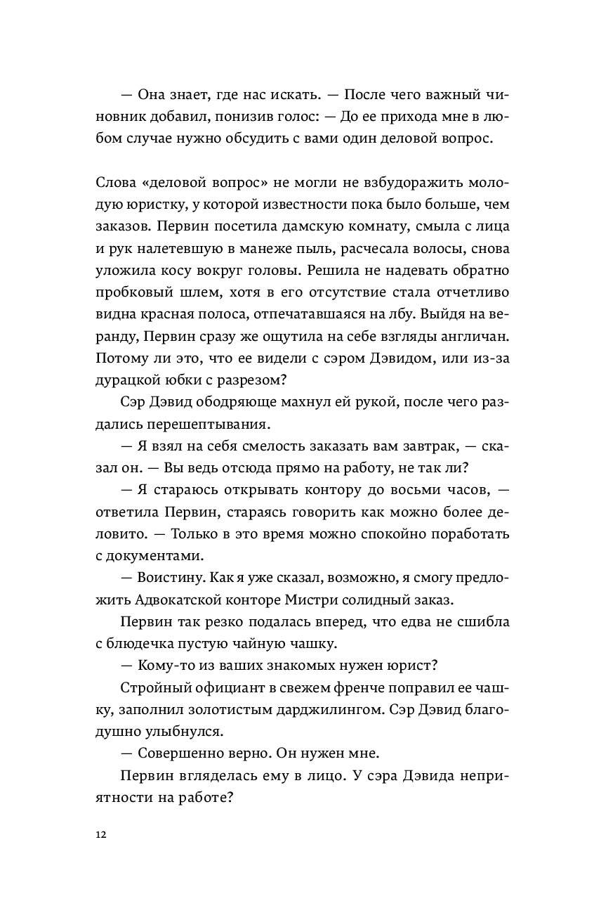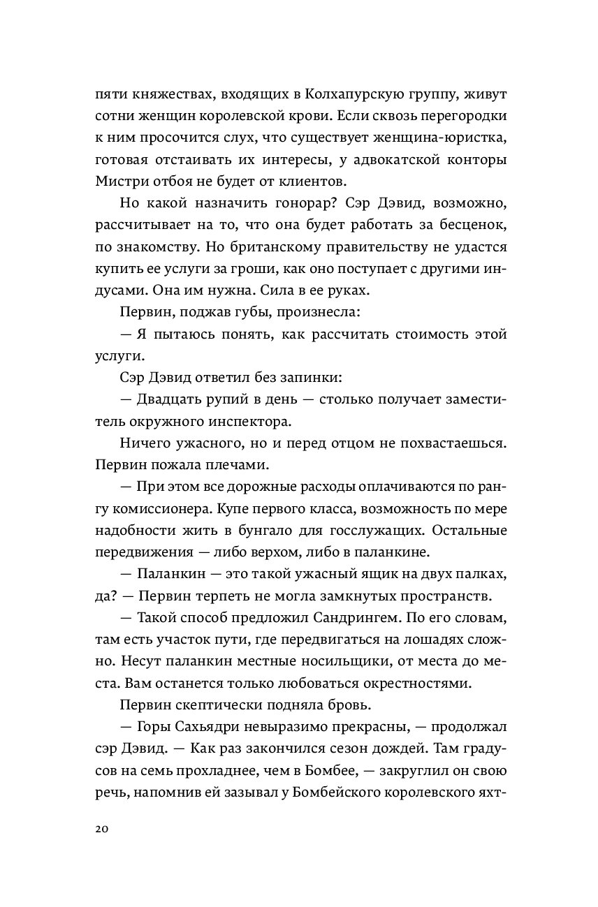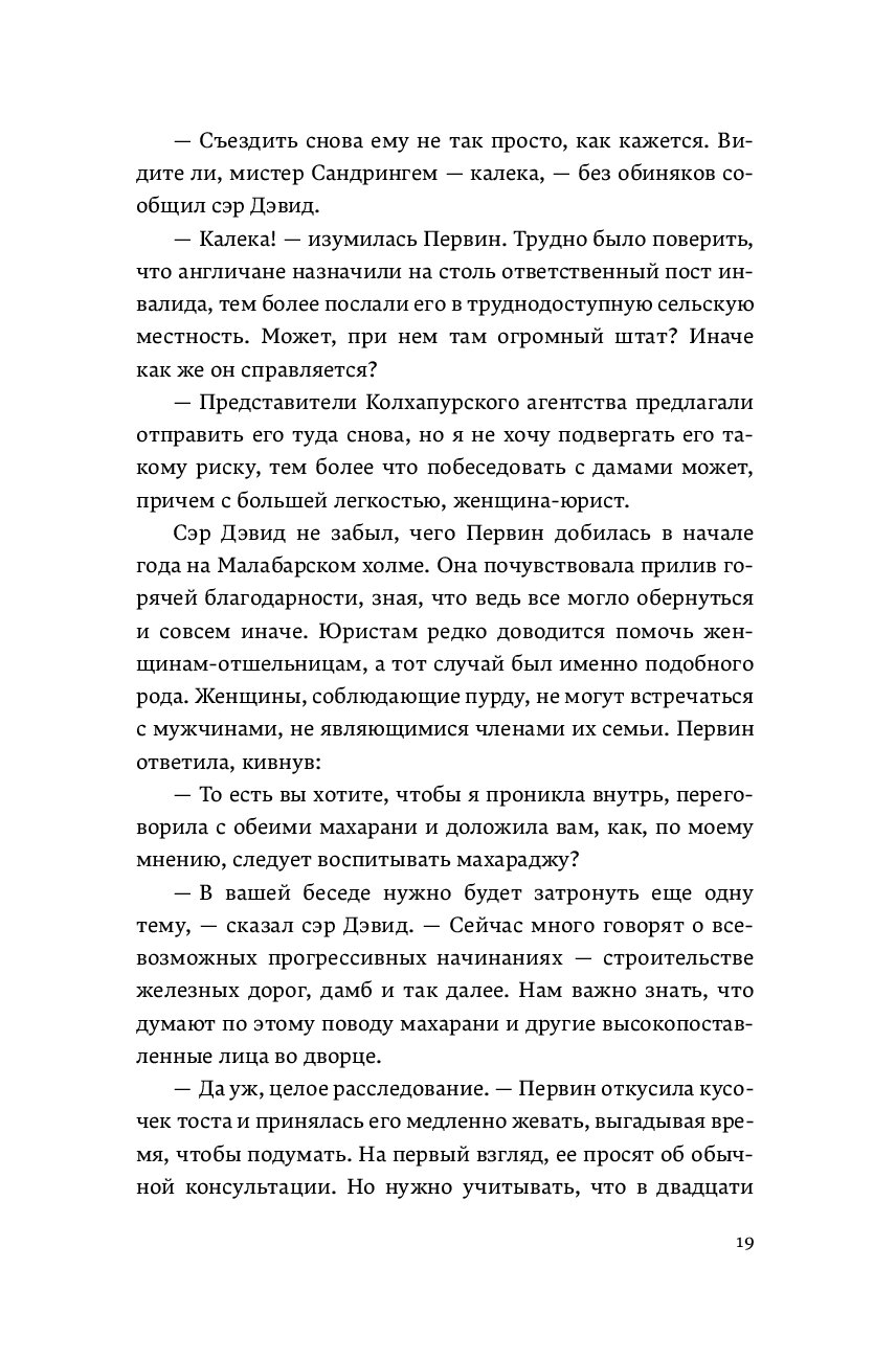 Индия, 1922 год: дождливый сезон в отдаленных горах Сахьядри, где скрыто крошечное княжество Сатапур. Кажется, на местную княжескую семью обрушилось проклятие. Махараджа Махендра Рао скончался от внезапной болезни вскоре после трагического несчастного случая на охоте, в котором погиб его старший сын. Младший же еще слишком юн, чтобы править королевством, поэтому за него это делают премьер-министр, дядя молодого князя, и политический агент Британии от имени двух махарани Сатапура — старой княгини и ее невестки. Благородные дамы находятся в разногласии относительно образования юного наследника, и им нужна помощь юриста. Однако махарани соблюдают пурду и не могут общаться с мужчинами. Только один человек может им помочь — Первин Мистри, единственная женщина-адвокат в Бомбее. Первин решительно стремится принести мир в княжеский дом и дать обоснованную рекомендацию для будущего махараджи, но по прибытии она обнаруживает, что дворец Сатапура расколот борьбой за власть и кровавой местью. Слишком поздно ей становится ясно, что она попала в ловушку. Но чью? И как она может защитить детей от смертельного проклятия дворца?