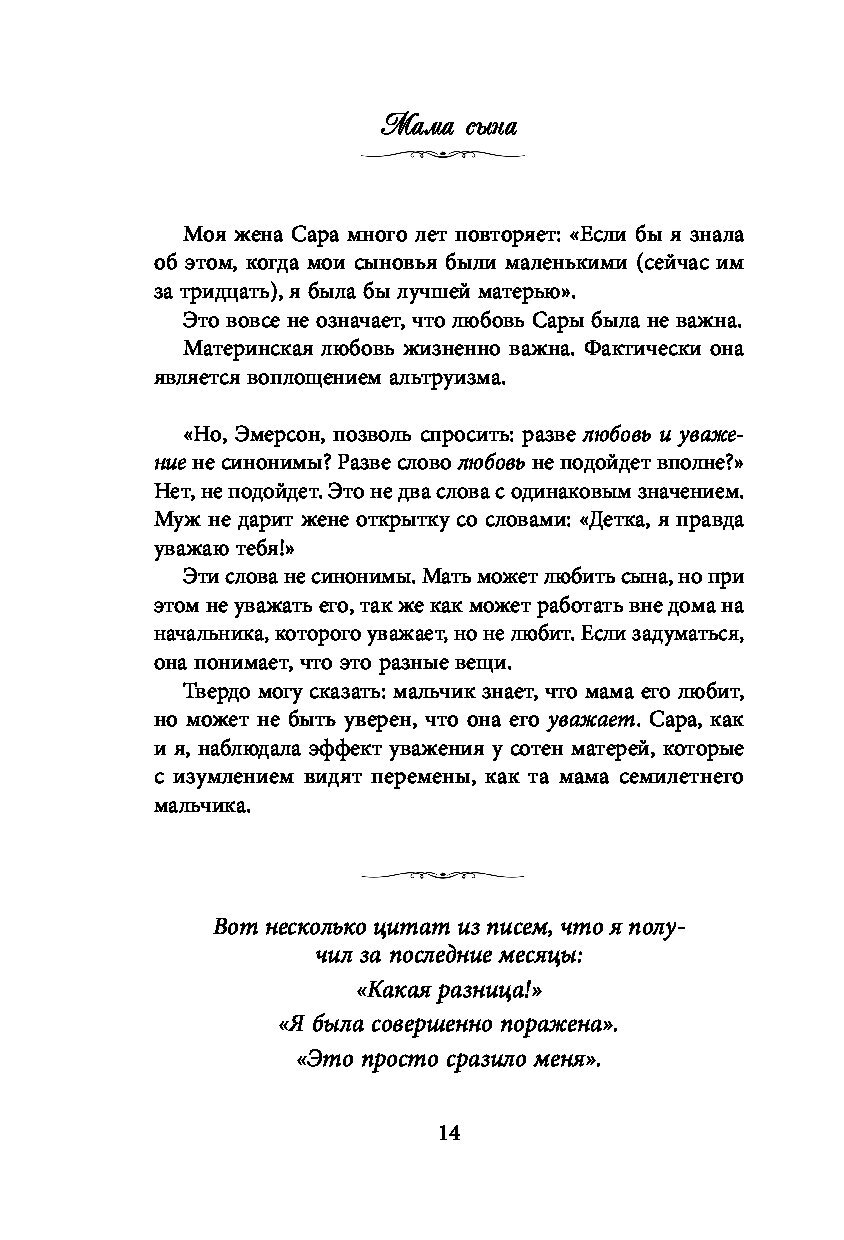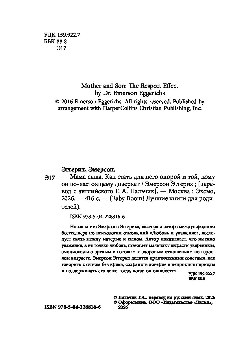 Эта книга поможет по-новому взглянуть на отношения между матерью и сыном: не через призму воспитания, а через уважение и доверие. Эмерсон Эггерих, автор международного бестселлера по психологии отношений «Любовь и уважение», показывает, как простые слова, интонации и поддержка способны укрепить связь и стать источником внутренней силы для мальчика.