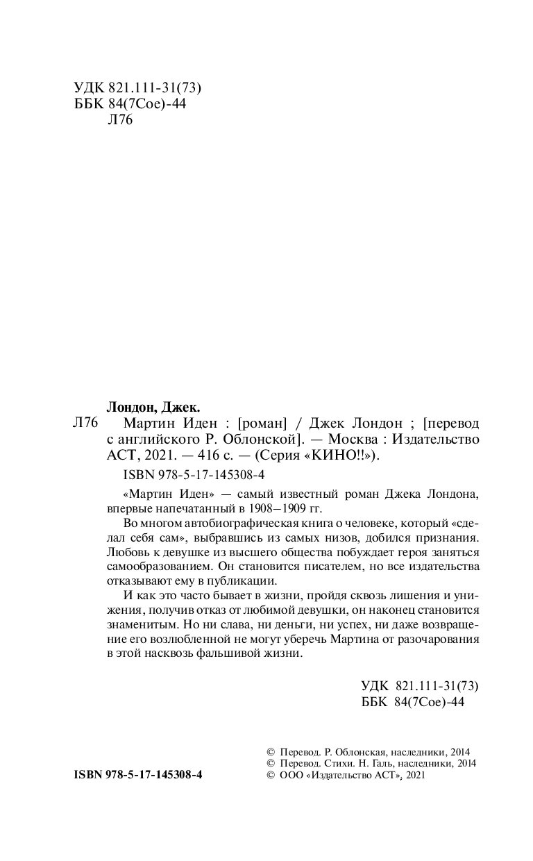 Специально к премьере итальянско-французского фильма АСТ выпускает переиздание, пожалуй, самого известного романа Джека Лондона в кинообложке. Вольная экранизация романа 1909 года стала настоящим хитом 76-го Венецианского кинофестиваля. Несмотря на то, что действие перенесено в Неаполь, фильму удается рассказать историю самого Мартина Идена, простого моряка, который однажды влюбился в девушку из богатой светской семьи и захотел стать достойным ее.