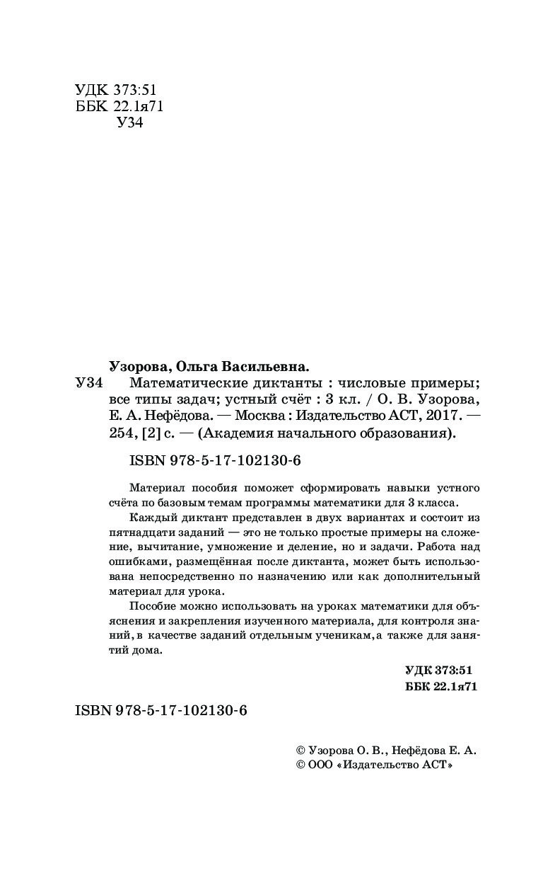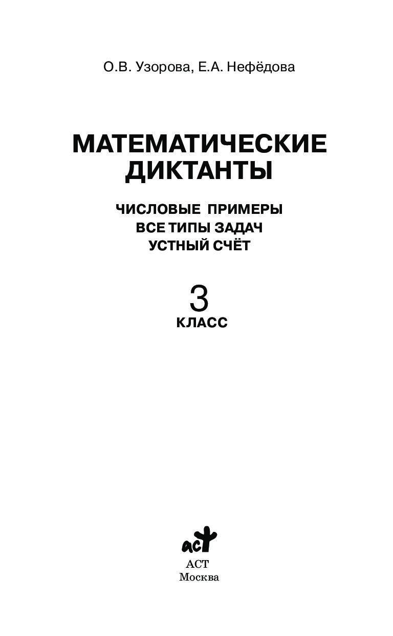 Книга «Математические диктанты. Числовые примеры. Все типы задач. Устный счет. 3 класс» Узорова О.В., Нефедова Е.А.