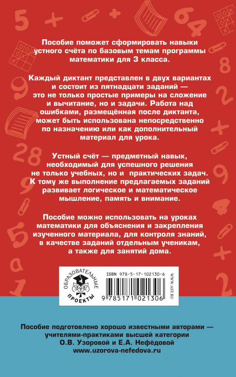 —Книга «Математические диктанты. Числовые примеры. Все типы задач. Устный счет. 3 класс» Узорова О.В., Нефедова Е.А.