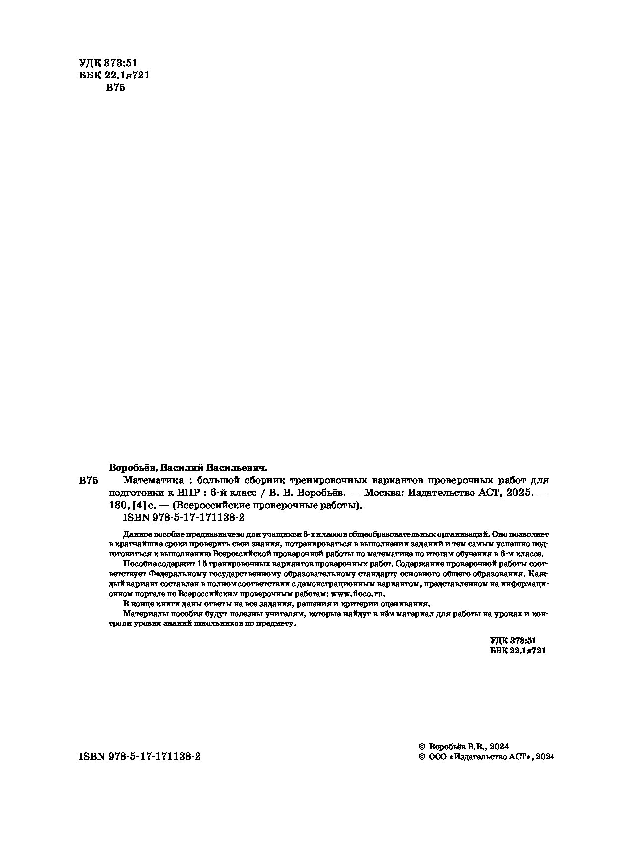 «Математика. Большой сборник тренировочных вариантов проверочных работ для подготовки к ВПР. 6 класс» Воробьёв В.В.