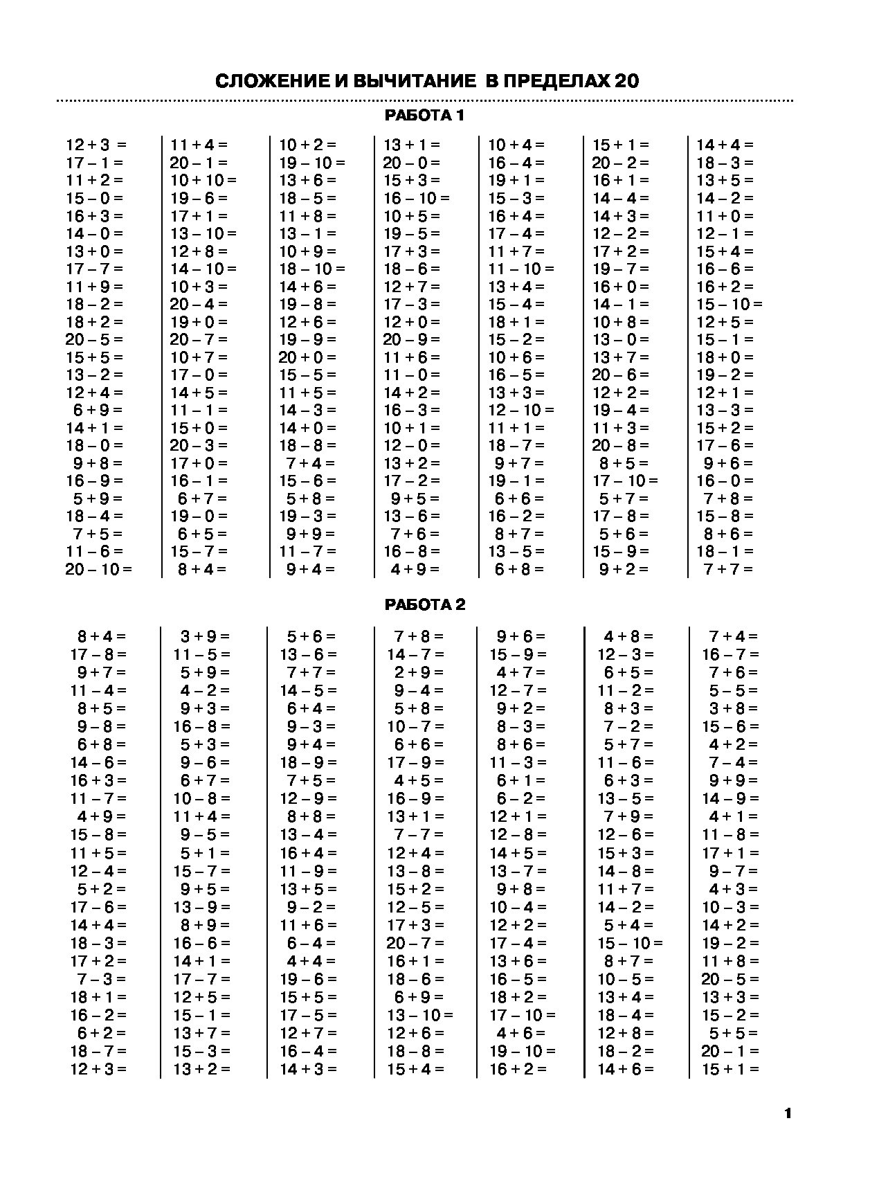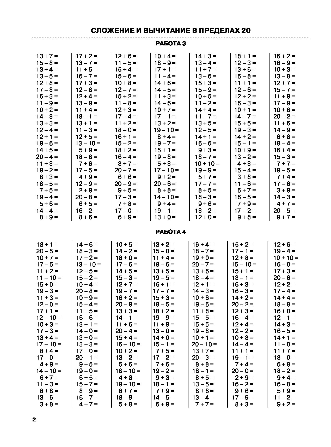 В пособии представлены примеры и задания на сложение и вычитание в пределах 20 и в пределах 100.