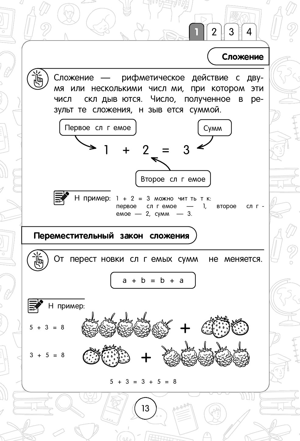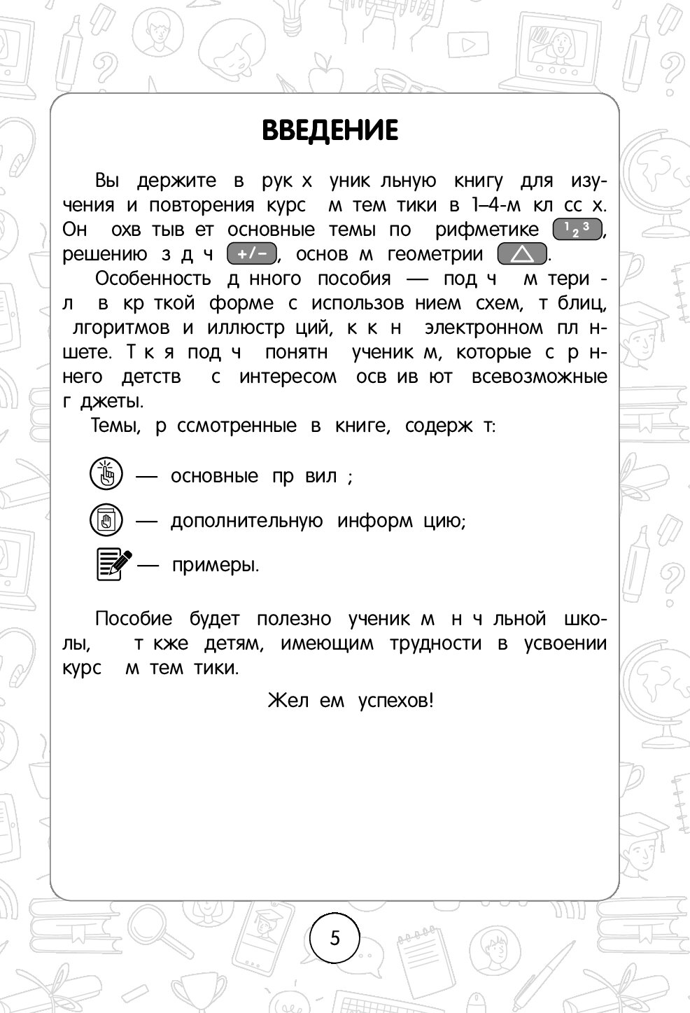 Правила математики объясняются в лёгкой и доступной форме, что позволяет ученикам начальной школы лучше усваивать информацию. На каждый конкретный вопрос даётся понятный и исчерпывающий ответ. Справочник хорошо структурирован, позволяет удобно и быстро ориентироваться по темам, поэтому станет универсальной шпаргалкой для подготовки к урокам.