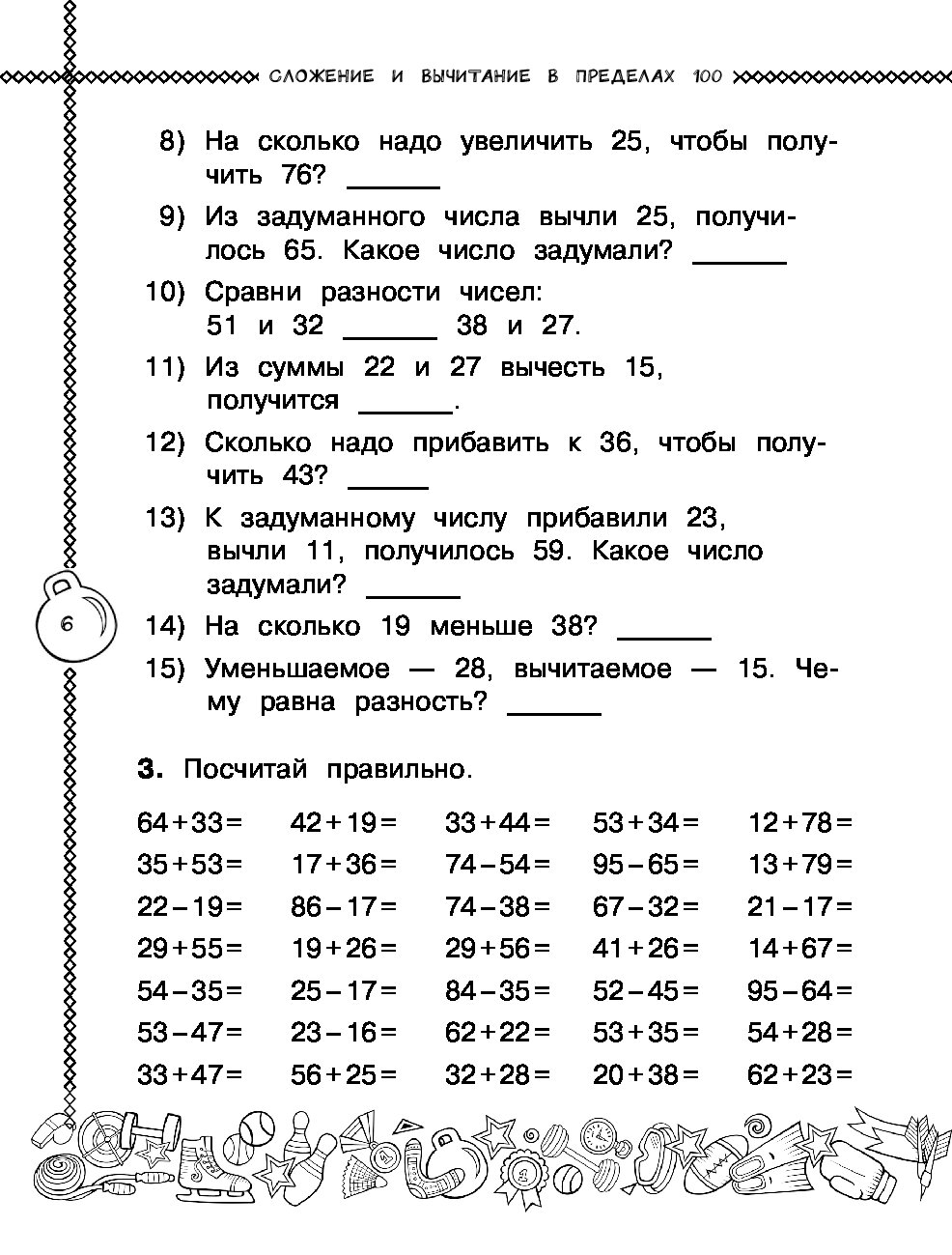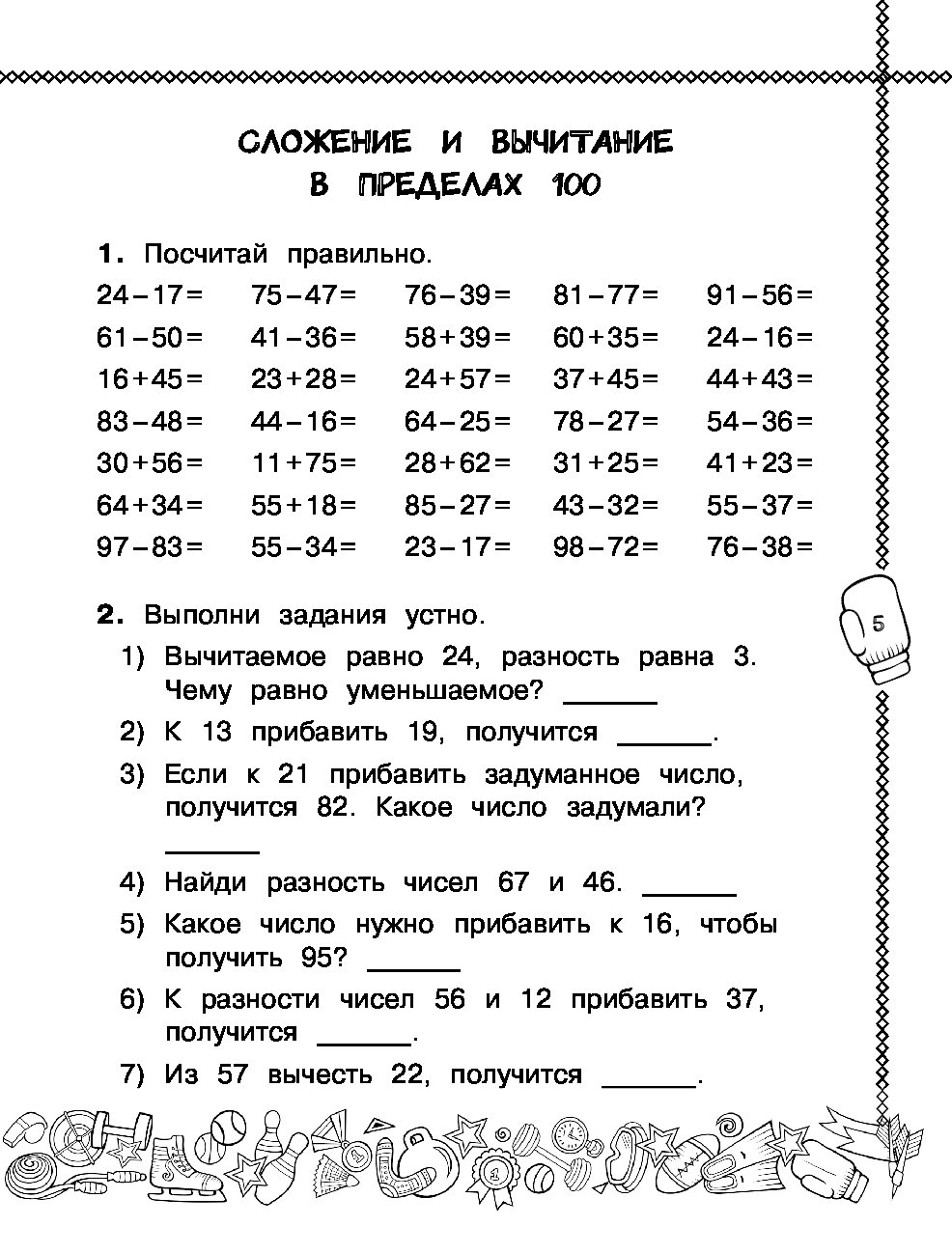 В книге представлены все виды заданий на сложение и вычитание в пределах 100 и 1000: