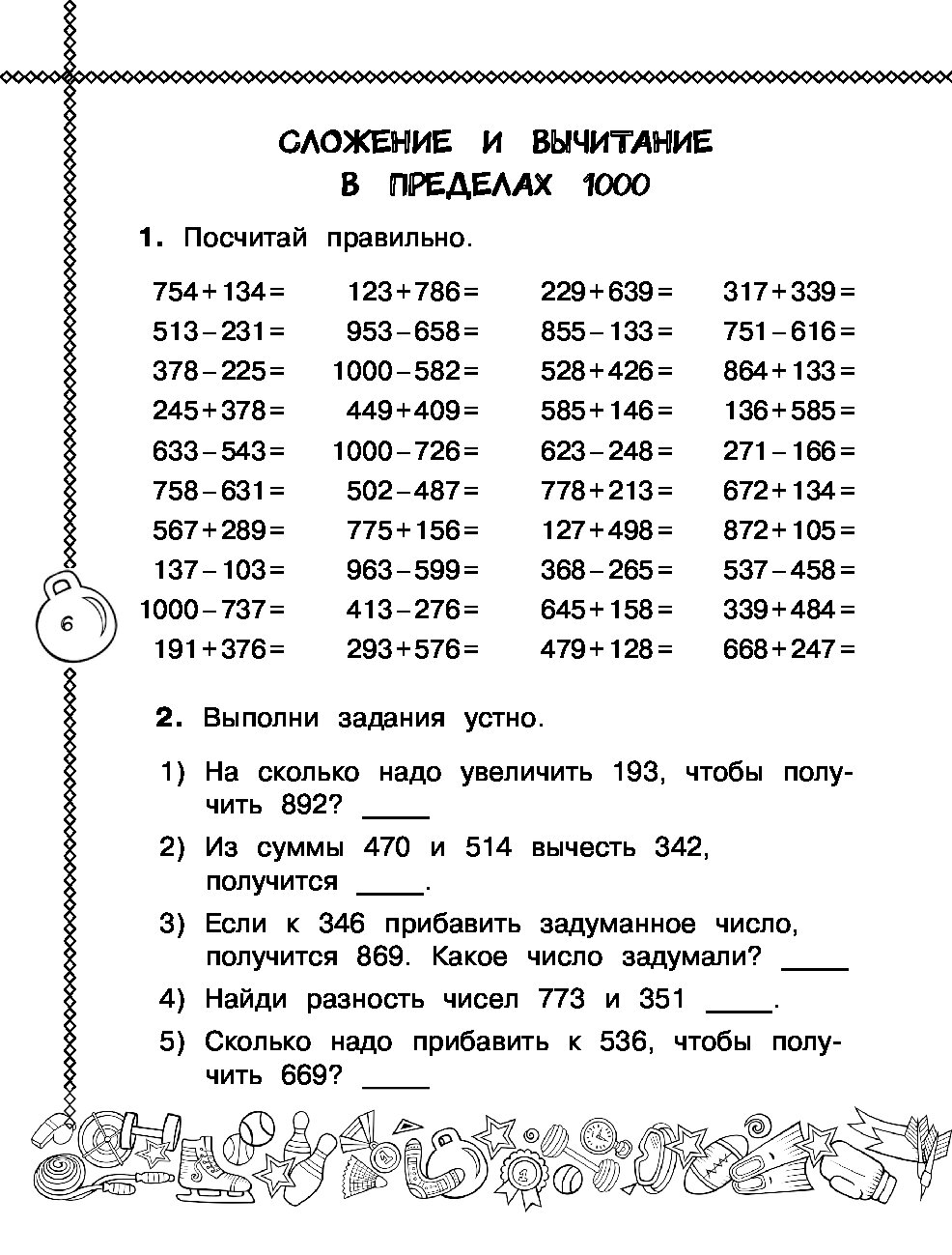 В книге представлены все виды заданий на сложение и вычитание в пределах 1000 и 10 000: