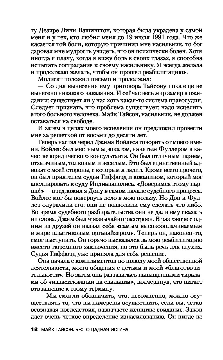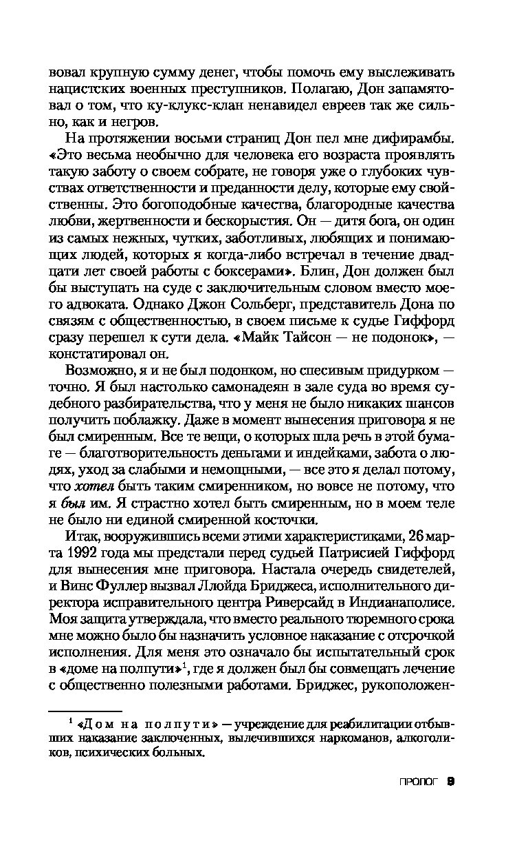 Он был абсолютно беспощаден к своим противникам на ринге. Он и теперь абсолютно беспощаден к себе и к читателю. Но только такая безжалостная искренность и позволила ему примириться с самим собой, восстановить достоинство и самоуважение, обрести любовь и семью.