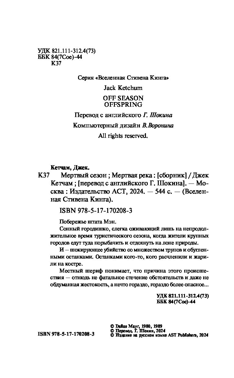 — Вышедший в 1980 году роман «Мертвый сезон» произвел настоящий фурор в жанре ужасов.