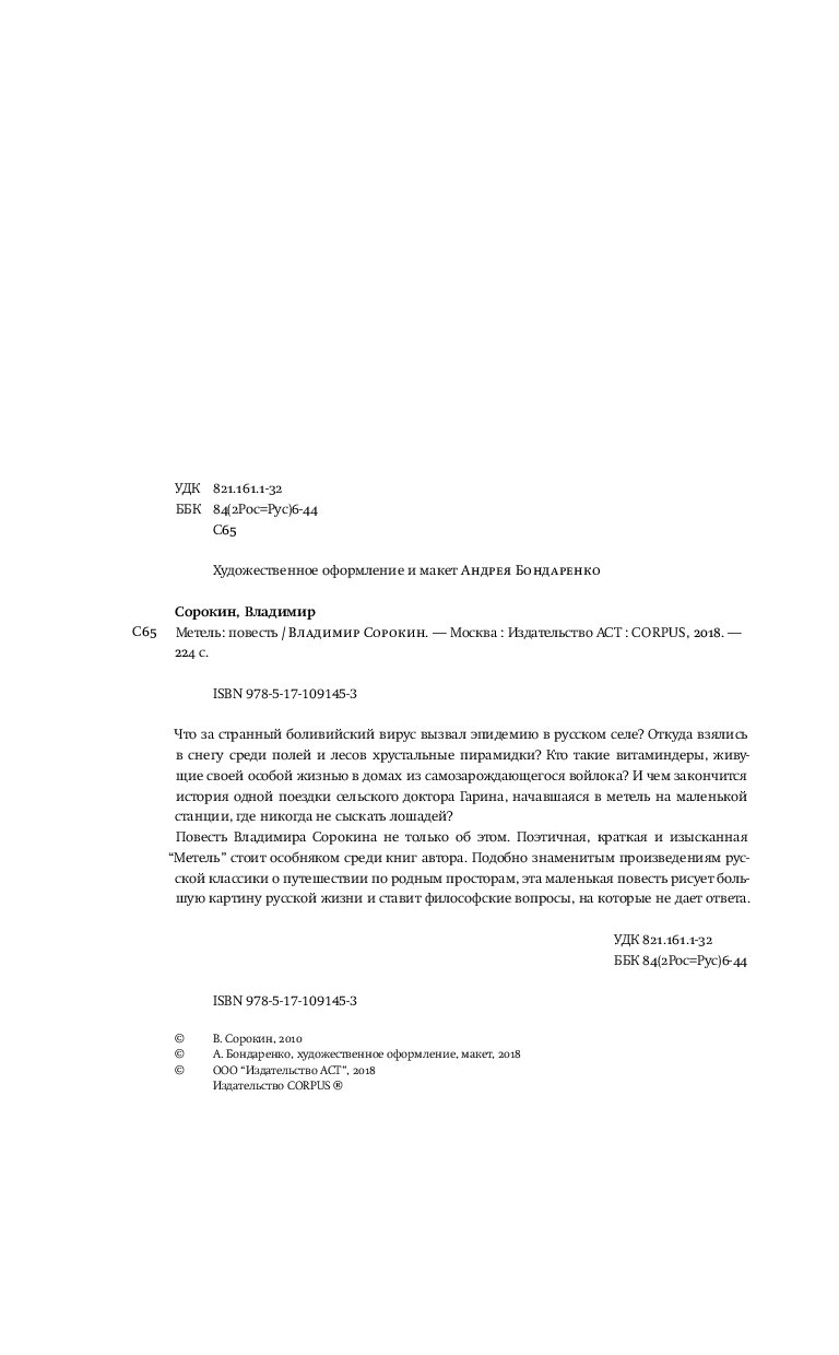—Книга «Метель» Сорокин В.Г.