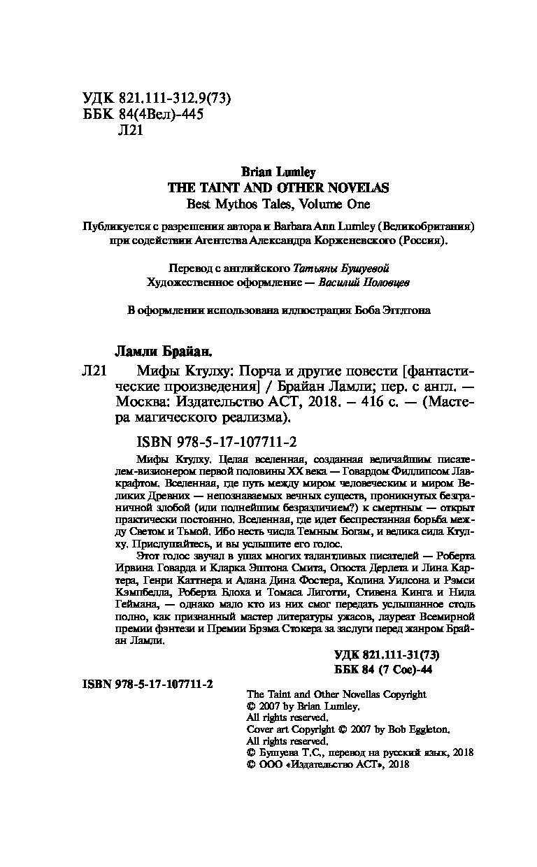 —Книга «Мифы Ктулху: Порча и другие повести» Ламли Б.
