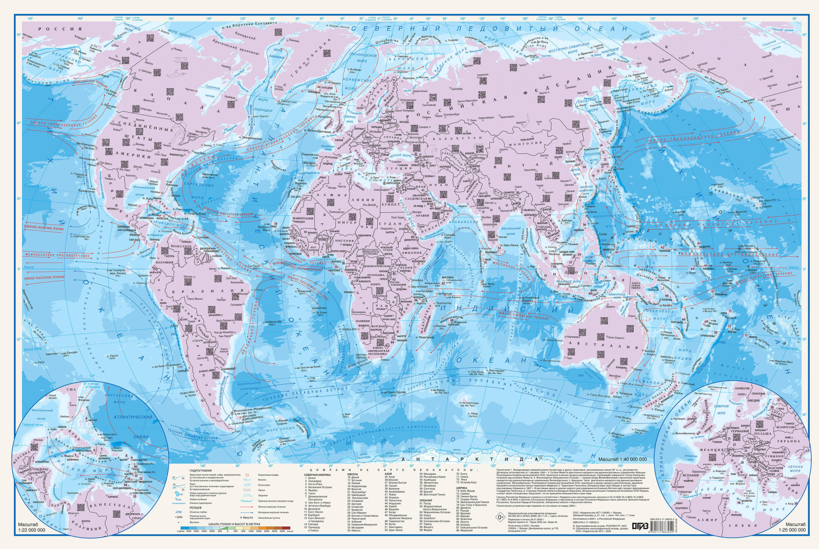 Скретч-карта мира 87х58 см на стену в ПВХ-тубусе – подарочный географический постер со стираемым слоем. На стираемом покрытии отображены границы. Также даны QR-коды, позволяющие с помощью вашего смартфона или планшета, имеющего выход в интернет, быстро перейти на страницы самых популярных заповедников и национальных парков. Узнавай новое, выбирай, куда спланировать следующее путешествие, сделай шаг в сторону новых открытий. Владелец этой карты сможет побыть в роли исследователя – под стираемым слоем на физической карте с помощью цветовой шкалы высот наглядно отражено чередование различных типов и форм рельефа. Отметки высот показывают вершины основных горных систем. Достаточно подробно даны объекты гидрографии (реки, болота, озёра, водохранилища) и их названия. В океанах показаны тёплые и холодные течения. Физическая карта мира составлена профессиональными картографами, отображенная информация позволяет верно представить территории стран.  Эта карта станет оригинальным подарком на Новый год, 23 февраля или 8 марта студенту, школьнику, интересующемуся географией или любителю путешествий.