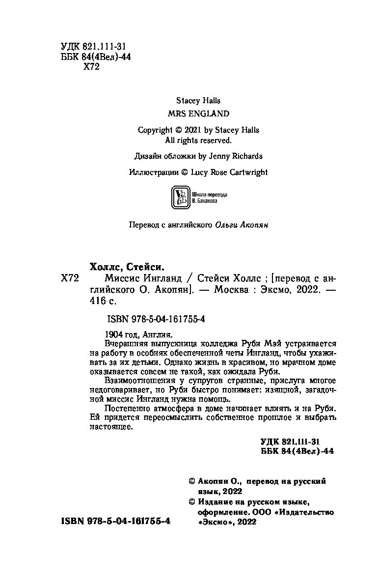 К тому же у нее складываются непростые отношения со здешней прислугой. А еще вскоре Руби становится очевидно — с изящной, загадочной миссис Ингланд что-то явно не так.