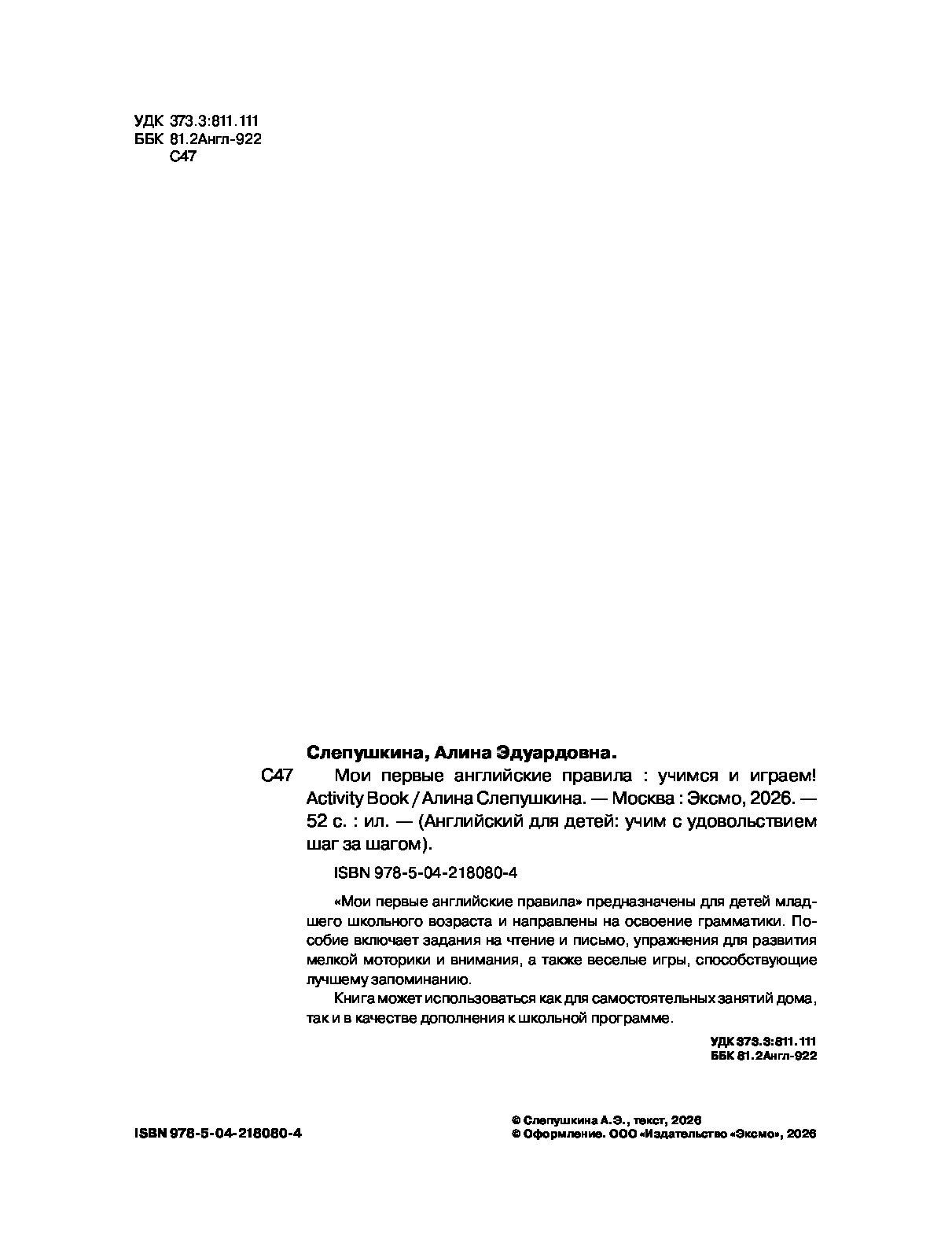 С этой книгой ребенок сделает первые уверенные шаги в понимании грамматики и почувствует себя настоящим знатоком английского языка.