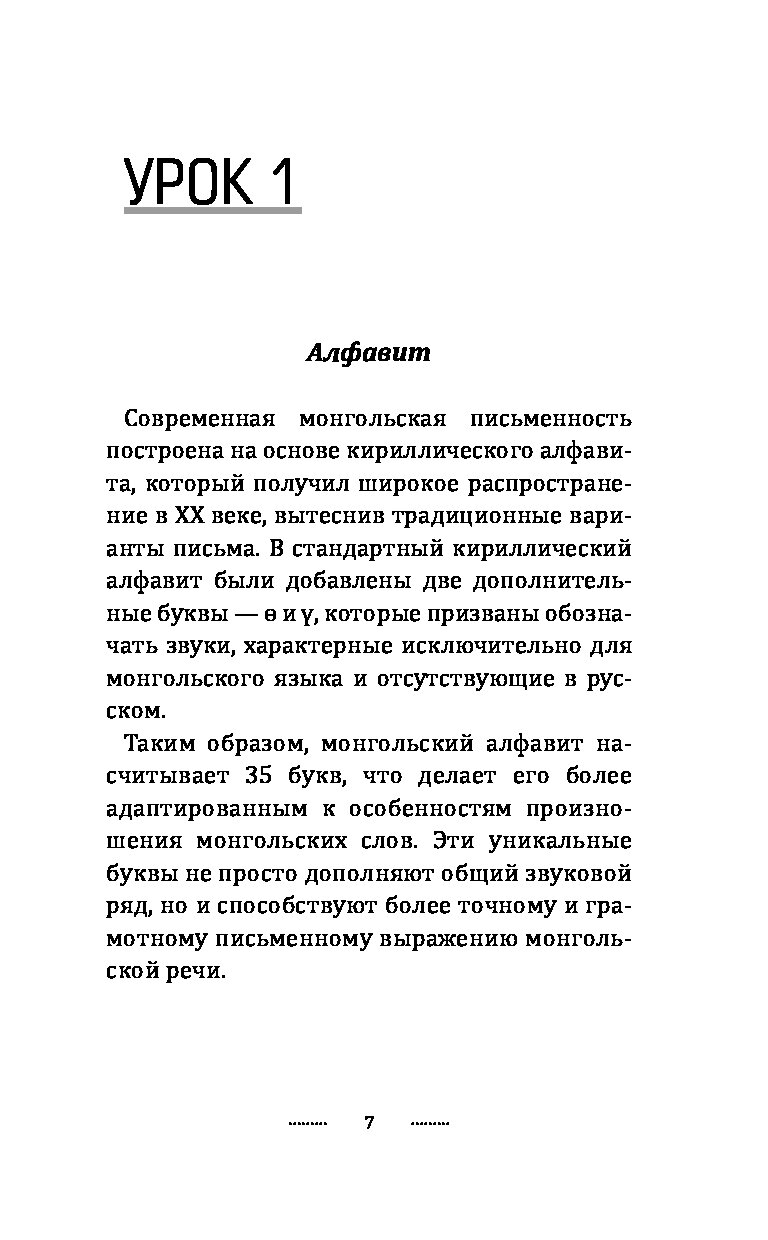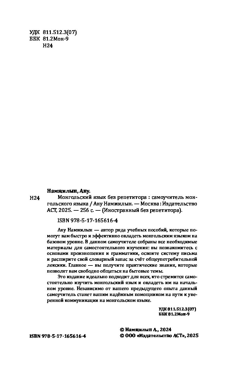 Это издание идеально подходит для всех, кто стремится самостоятельно изучить монгольский язык и овладеть им на начальном уровне. Независимо от вашего предыдущего опыта, данный самоучитель станет вашим надёжным помощником на пути к уверенной коммуникации на монгольском языке.