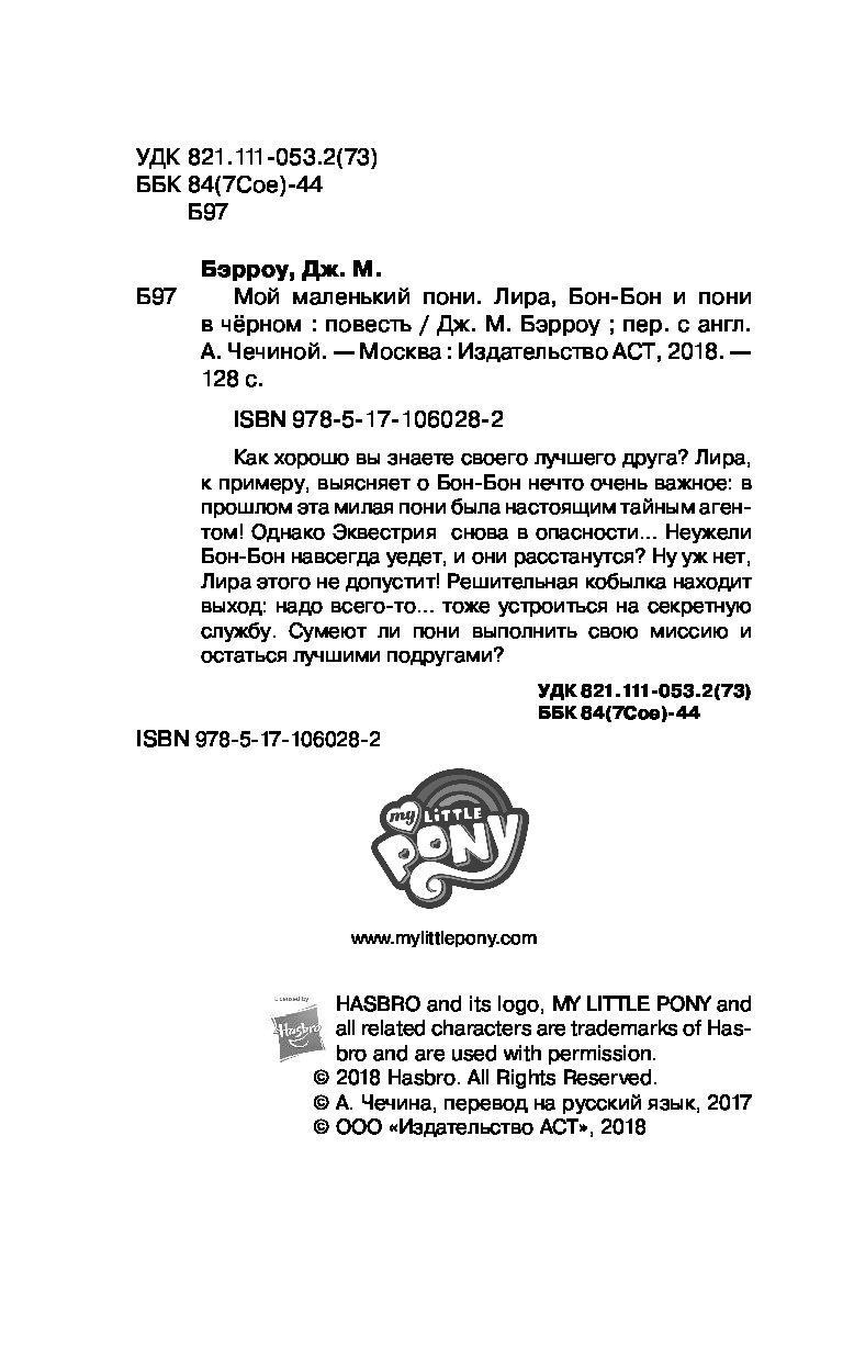 —Книга «Мой маленький пони. Лира, Бон-Бон и пони в чёрном» Бэрроу Д.М.