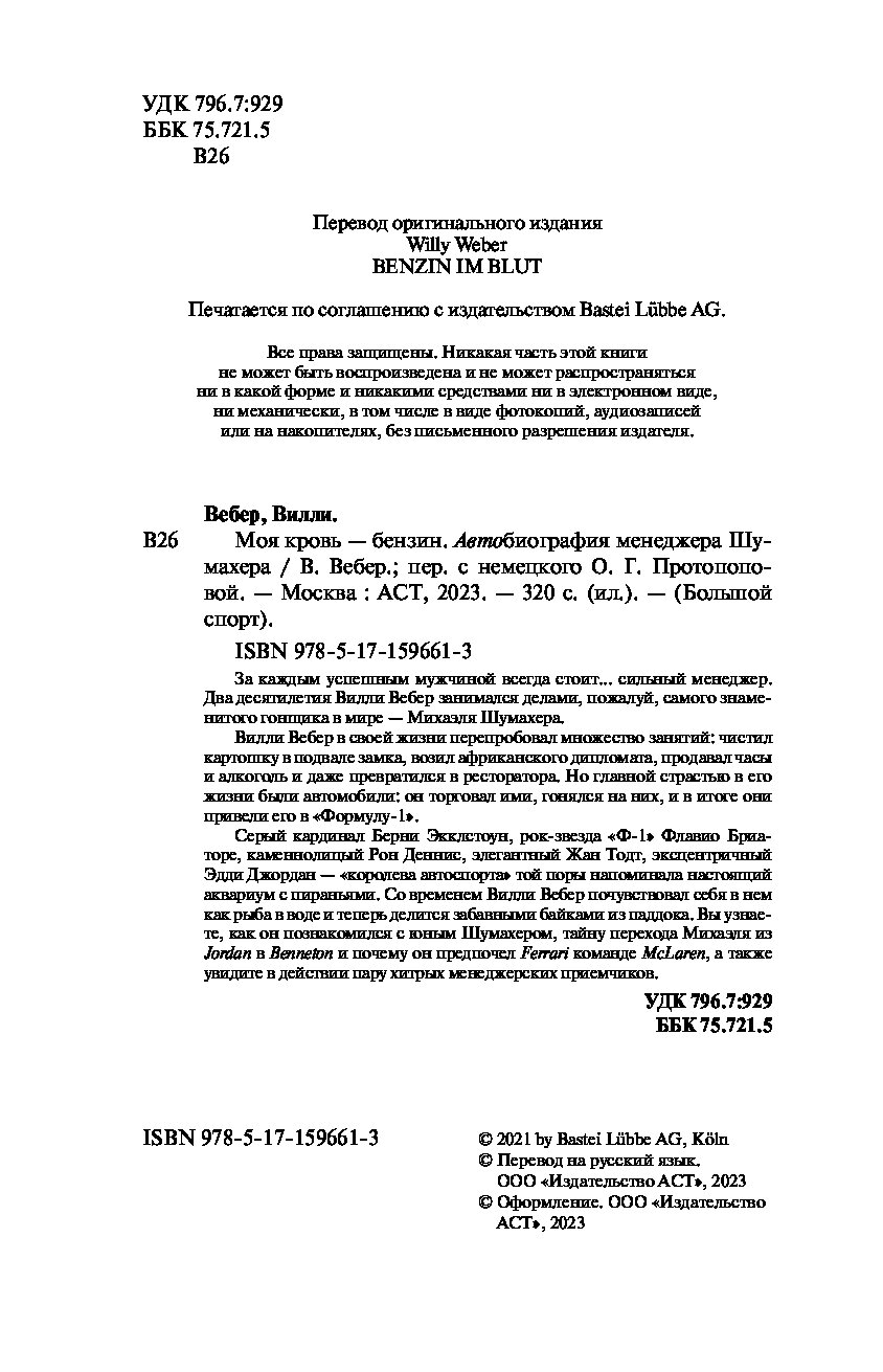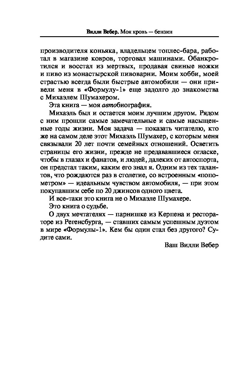 — «Моя кровь — бензин. Автобиография менеджера Шумахера» Вебер В.
