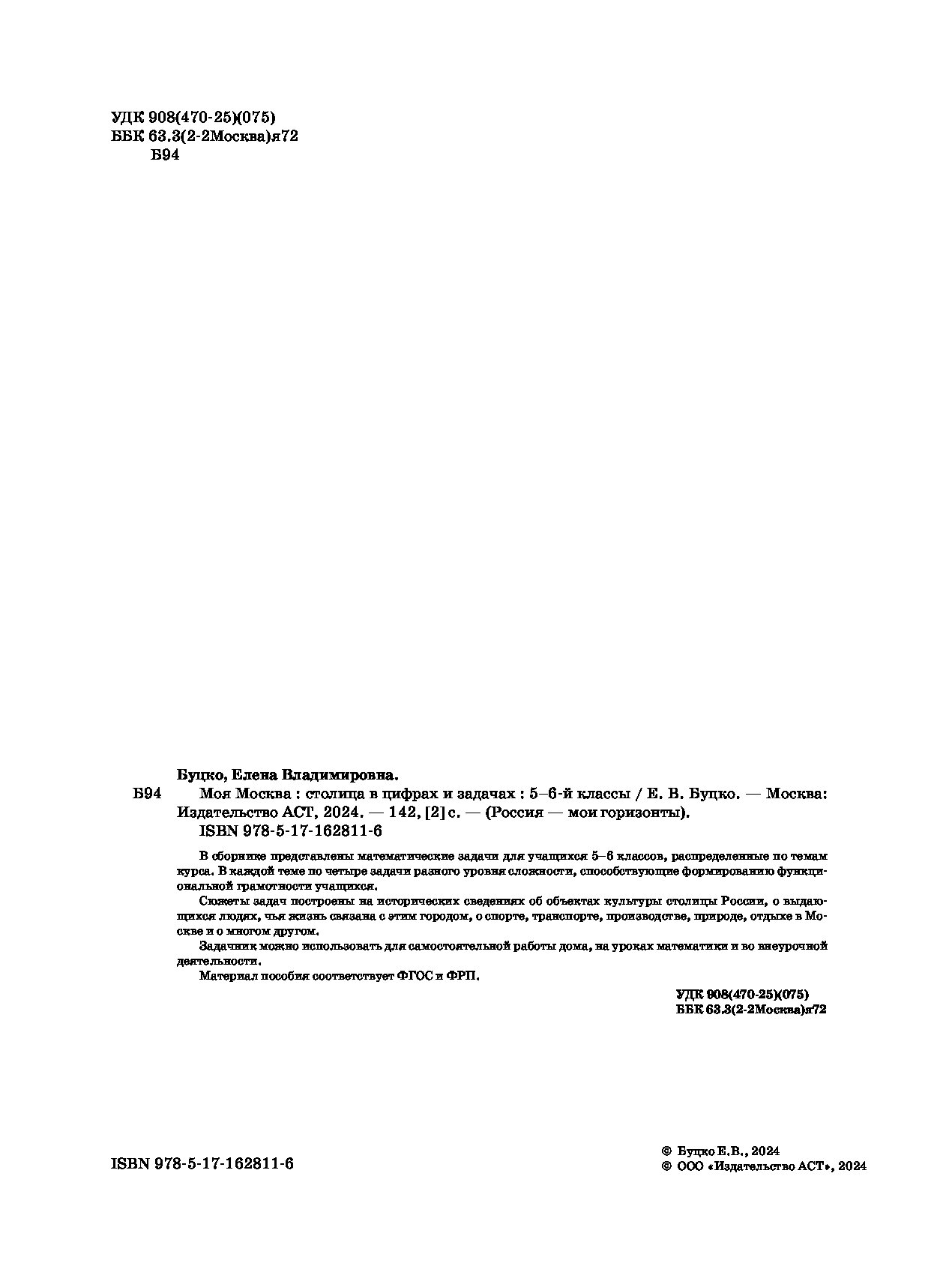 — «Моя Москва. Столица в цифрах и задачах. 5-6 классы» Буцко Е.В.