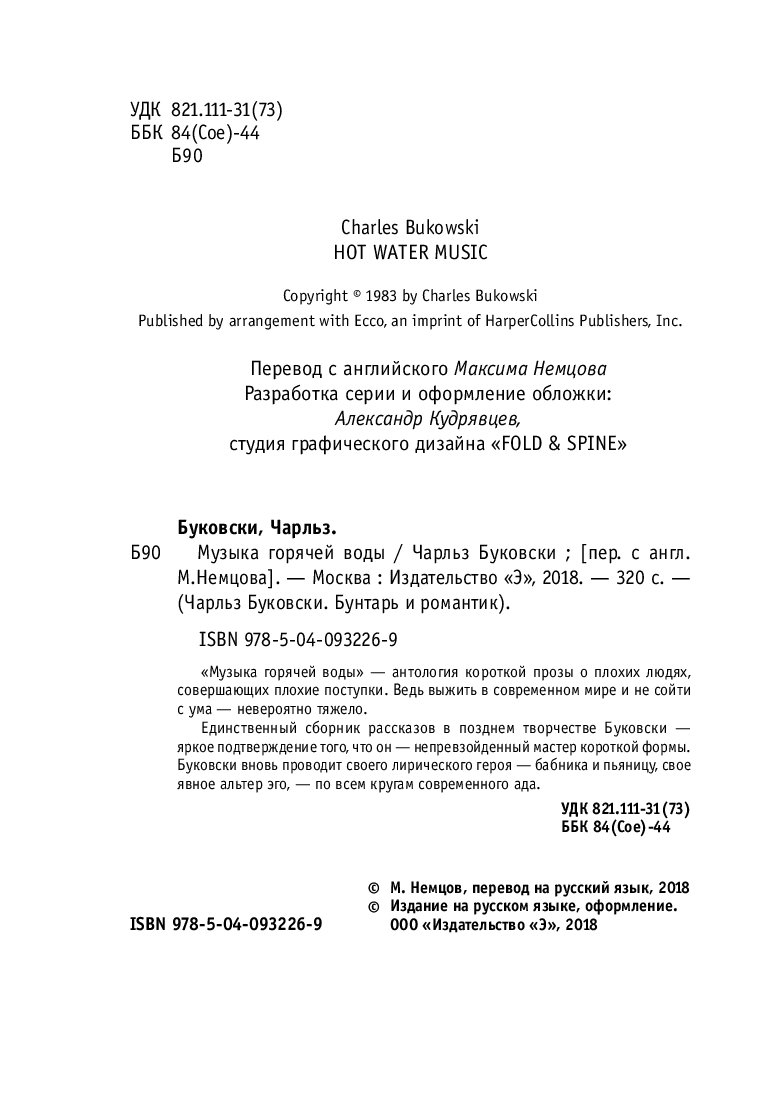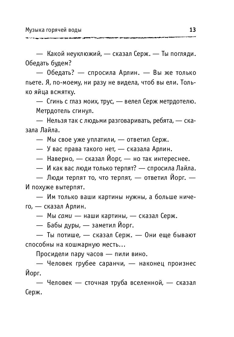 Хотите купить книгу Музыка горячей воды? В каталоге нашего книжного интернет-магазина вы найдете лучшие образцы художественной литературы, классические произведения, жемчужины отечественной и мировой поэзии. Все книги предлагаем недорого. В интернет-магазине Book24.kz можно не только заказать книгу по доступной цене, но и воспользоваться сервисом курьерской доставки. Отправляем заказы во все города РК: Алматы, Астана, Актау, Актобе, Атырау, Караганда, Кокшетау, Костанай, Кызылорда, Павлодар, Петропавловск, Талдыкорган, Тараз, Уральск, Усть-Каменогорск, Шымкент, и другие. Доставка занимает 1-9 дней.