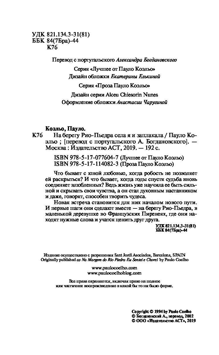 —Книга «На берегу Рио-Пьедра села я и заплакала» Коэльо П.