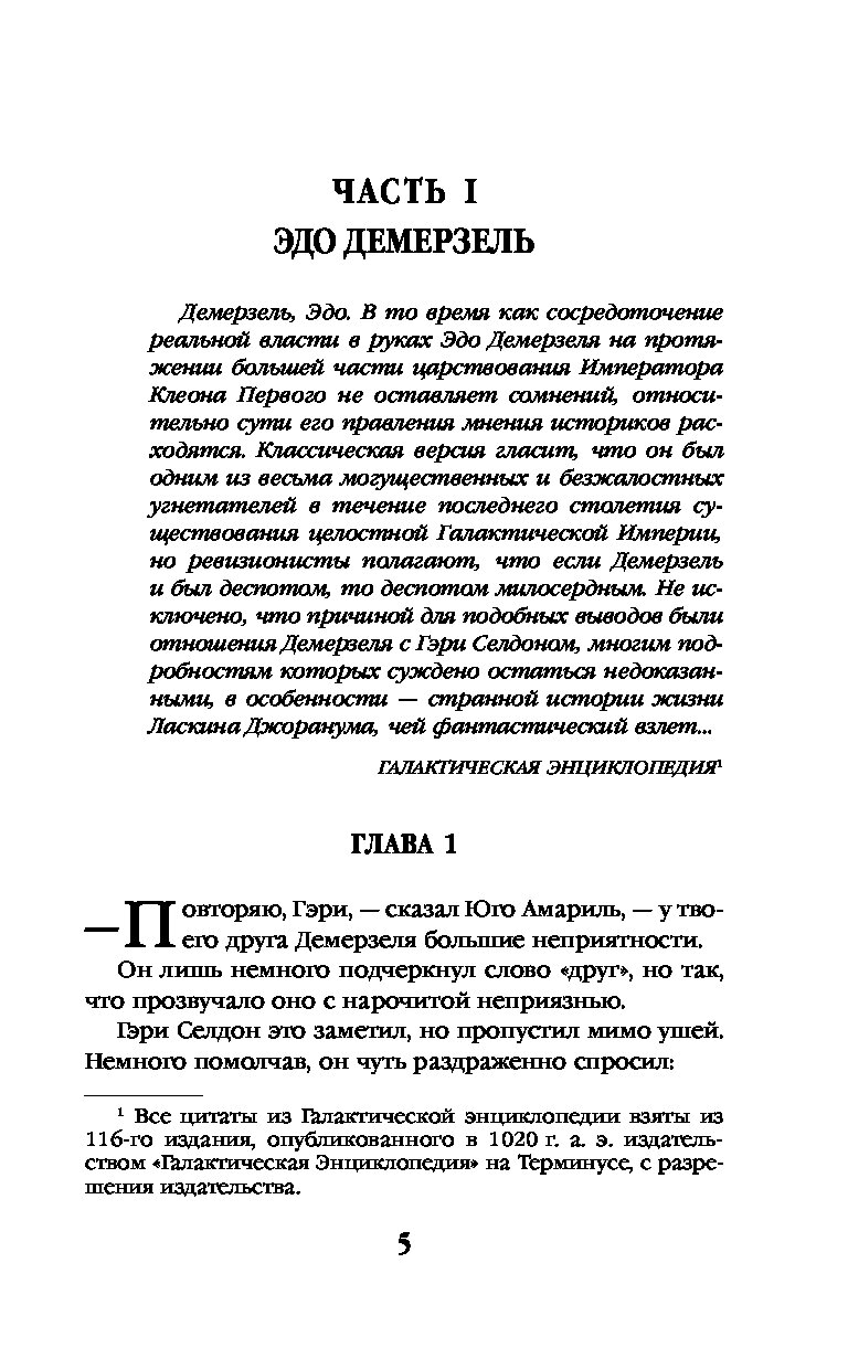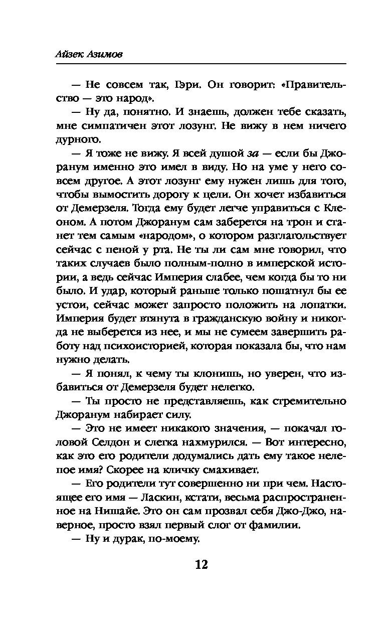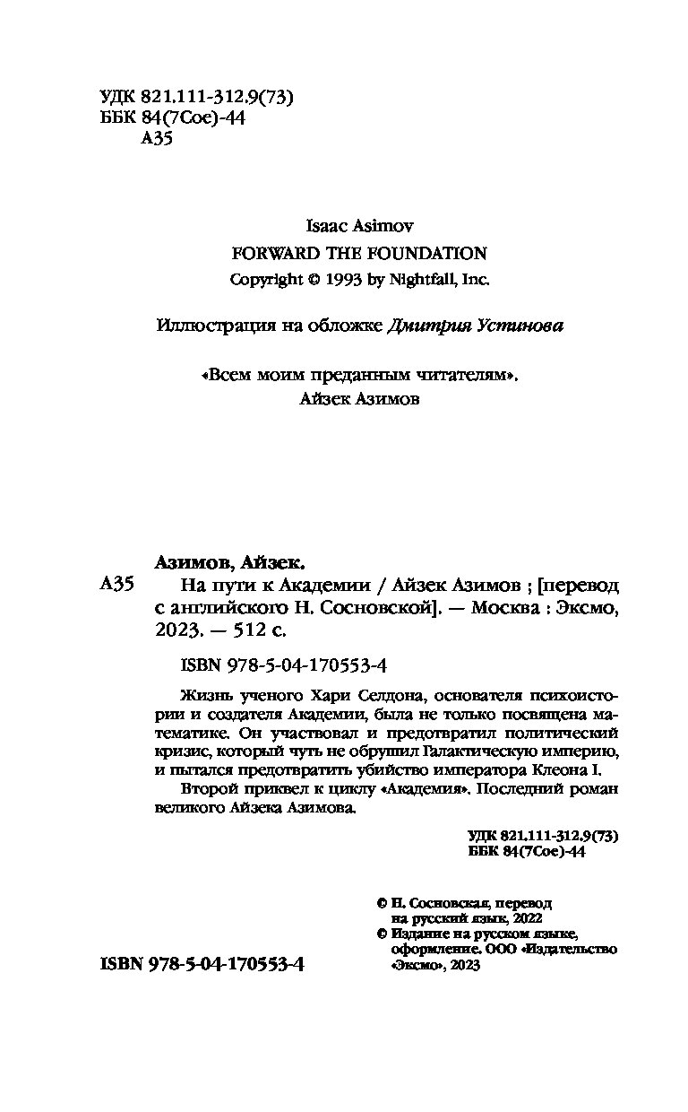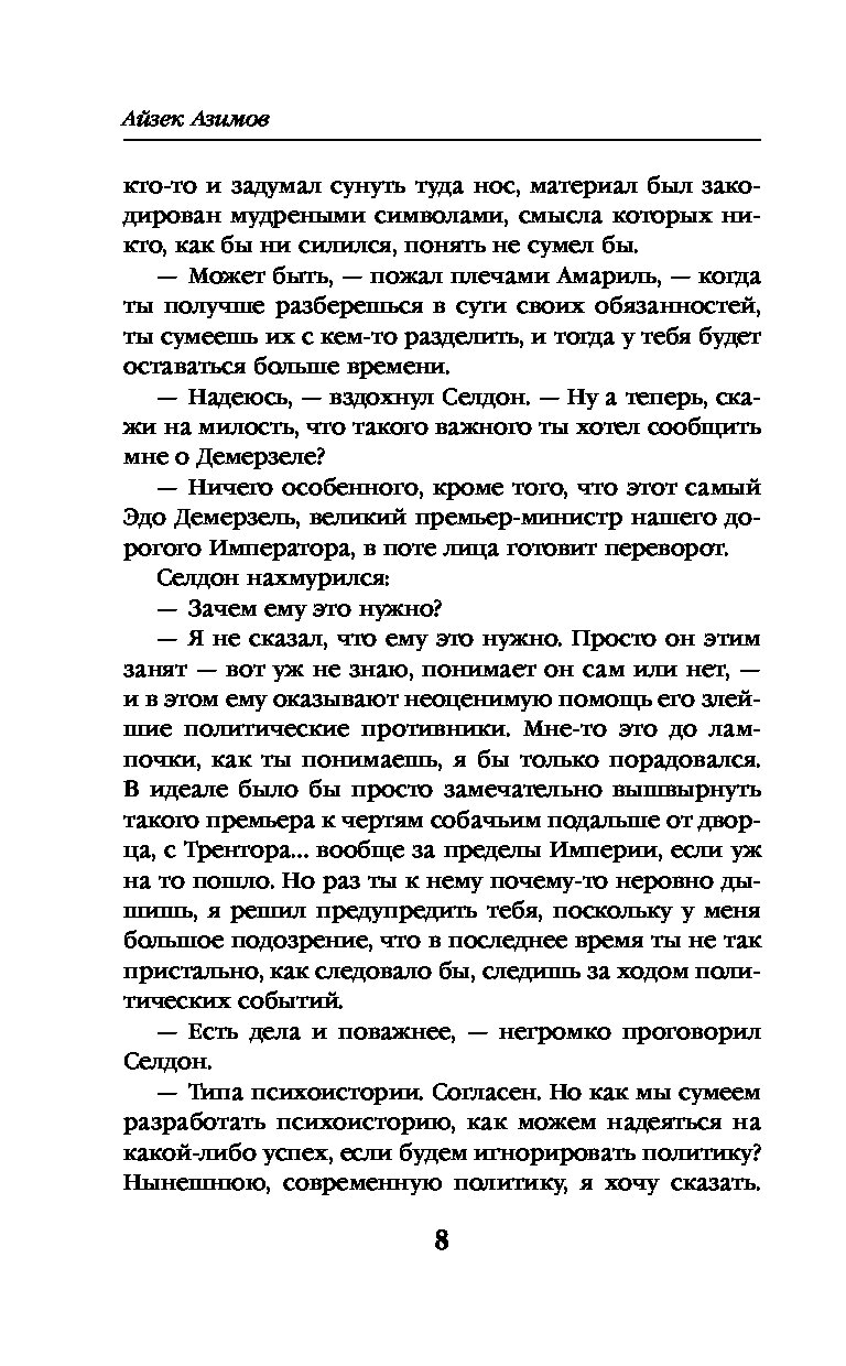 «Роман показывает самого Азимова, олицетворенного в Селдоне. Огромный интеллект и интерес психоисторика, его беспокойство о будущем науки во времена декаданса, его разочарование перед лицом смерти — все это звучит особо остро и правдиво». — PUBLISHERS WEEKLY