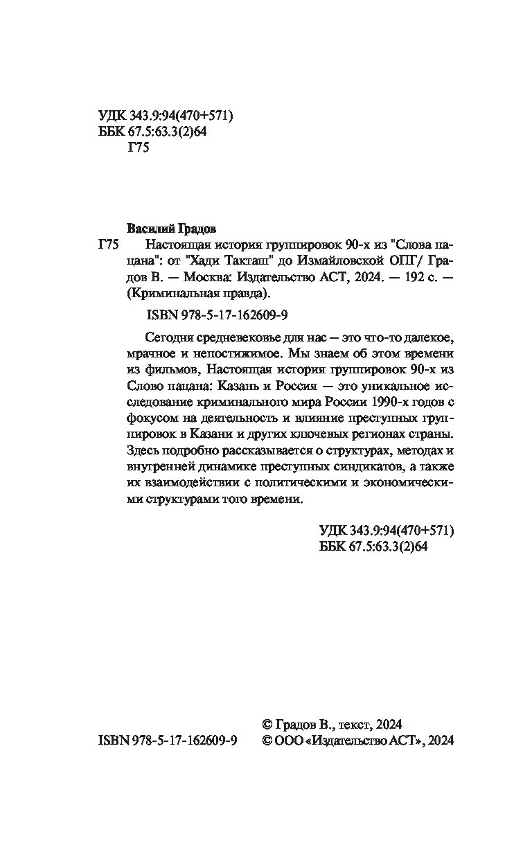 — «Настоящая история группировок 90-х из "Слова пацана": от "Хади Такташ" до Измайловской ОПГ» Градов В.