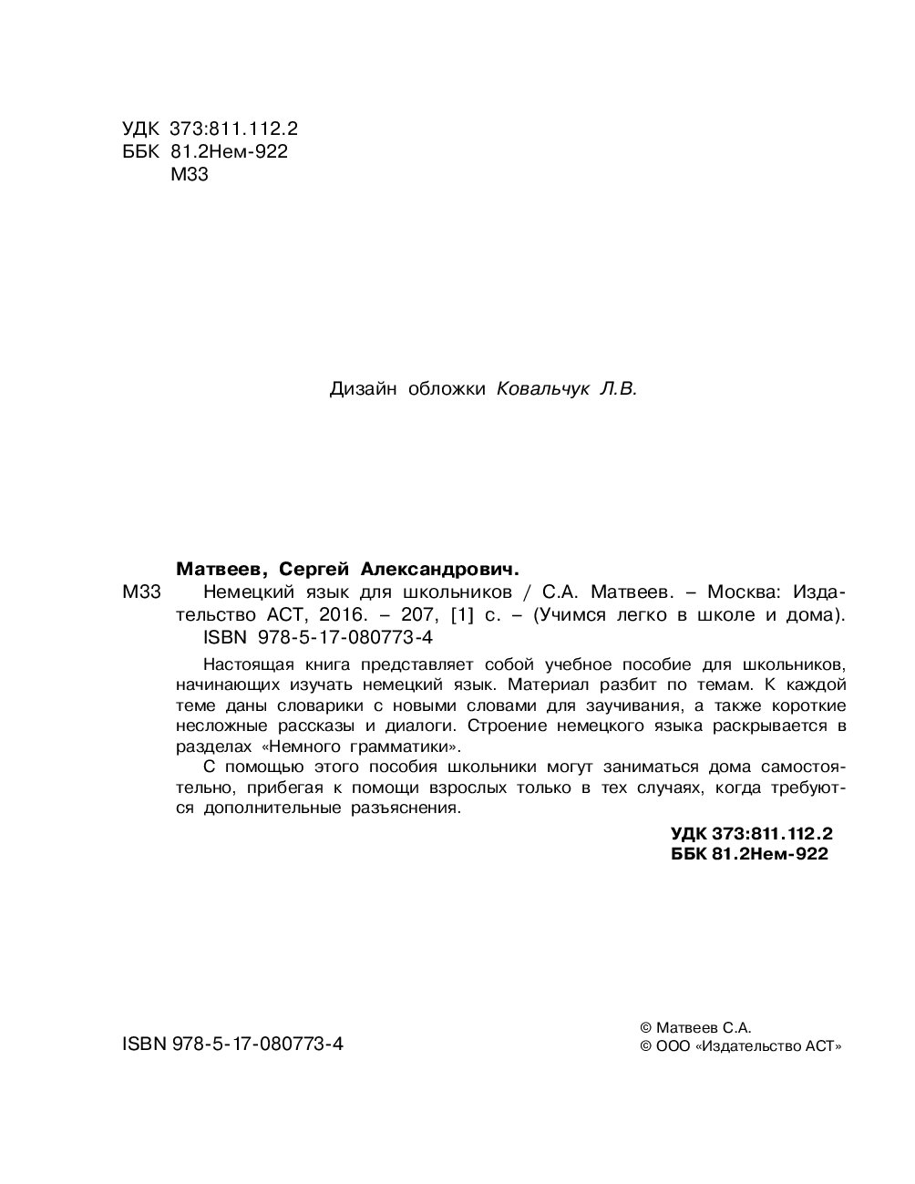 —Книга «Немецкий язык для школьников» Матвеев С.А.