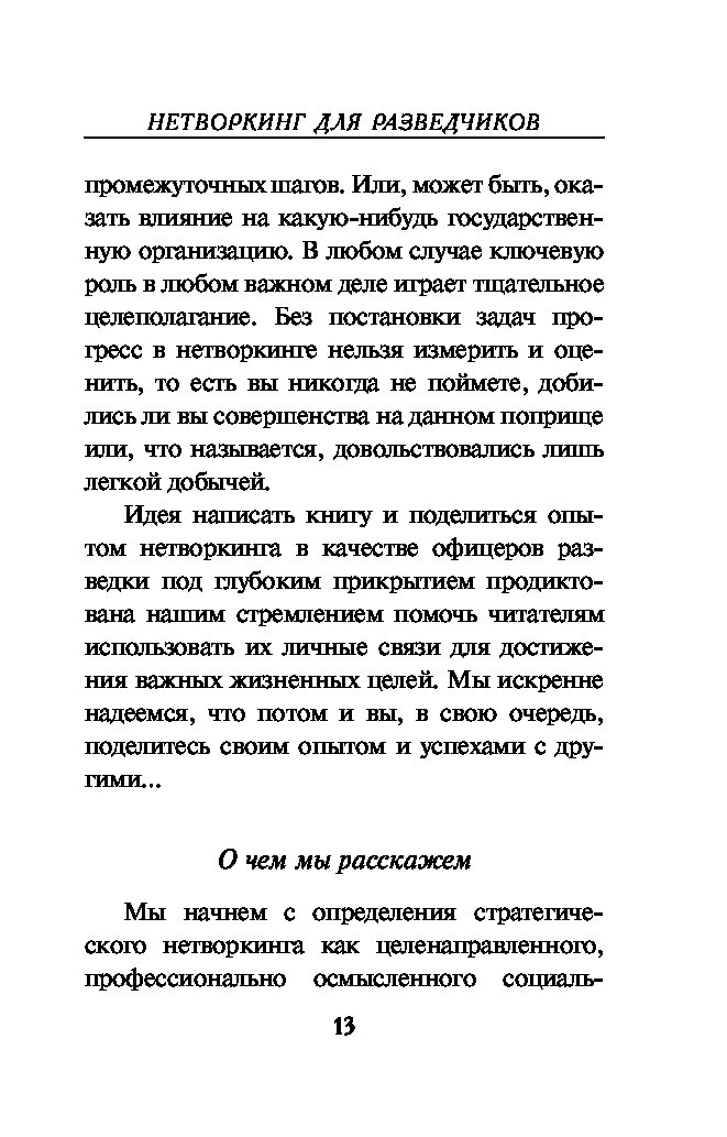 Не ставя своей задачей сделать из читателя разведчика (хотя, возможно, кого-то и вдохновит!), авторы научат разбираться в людях и создавать долгосрочные продуктивные отношения.
