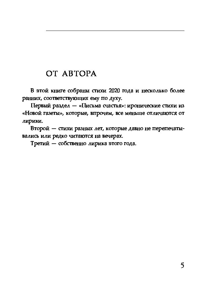 Первый раздел — "Письма счастья": иронические стихи из "Новой газеты", которые, впрочем, все меньше отличаются от лирики.