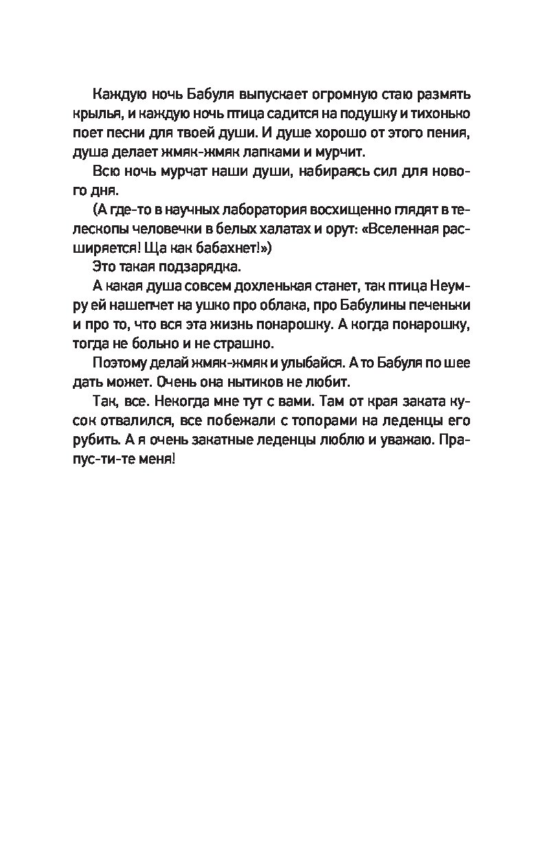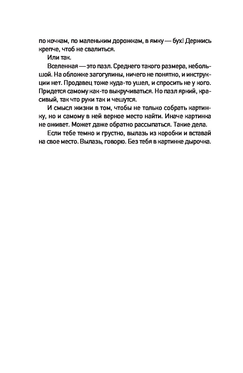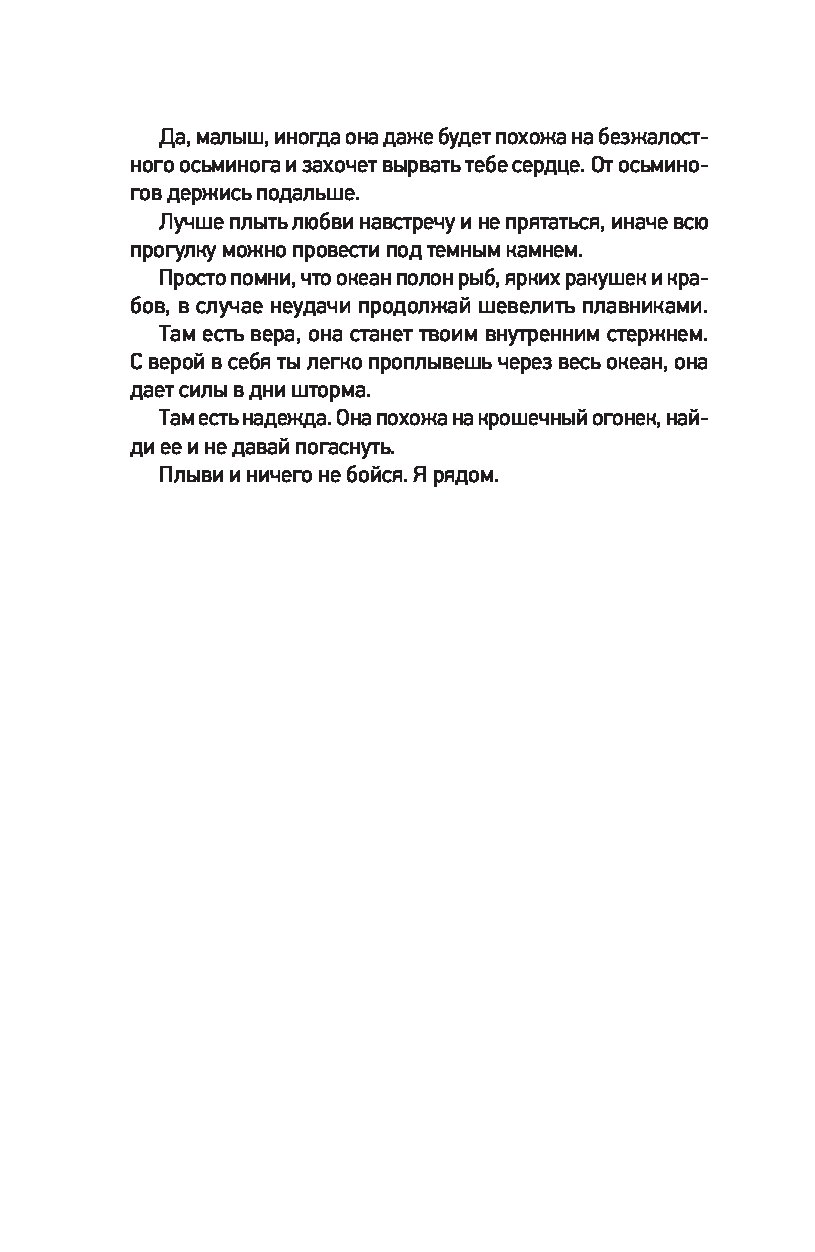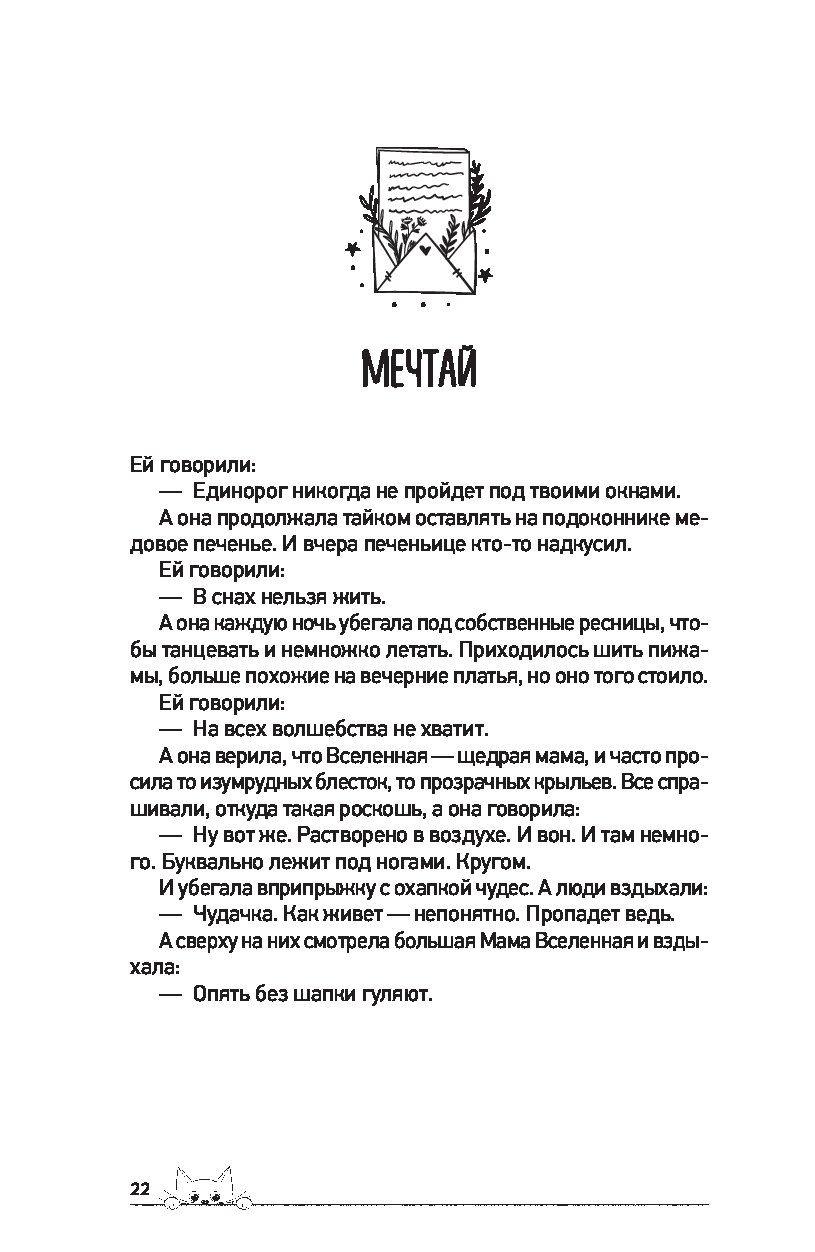 С этой книгой любой загрустивший взрослый сможет отвлечься от повседневных забот и немного поразмышлять в компании проникновенных героев – о смысле жизни, о люби, о счастье, о вдохновении и прочих «важностях». А еще – найти для себя мудрую мысль и превратить ее в девиз каждого нового дня. Добрые и трогательные истории с щепоткой юмора, житейской философии и волшебства подскажут читателям верное решение и поднимут настроение при любой душевной непогоде.