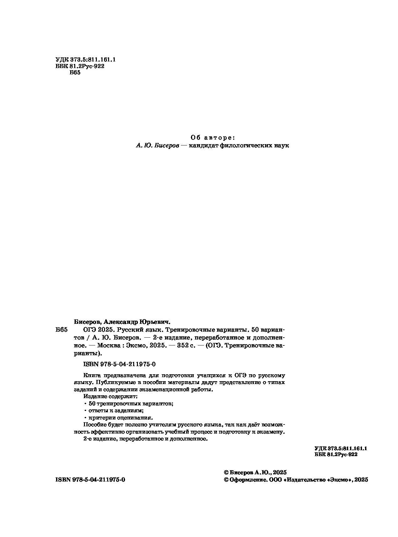 Автор книги — Александр Юрьевич Бисеров, кандидат филологических наук, тестолог, специалист в области педагогических измерений и создатель многочисленных учебных пособий для подготовки к ЕГЭ, ОГЭ и ВПР по русскому языку.