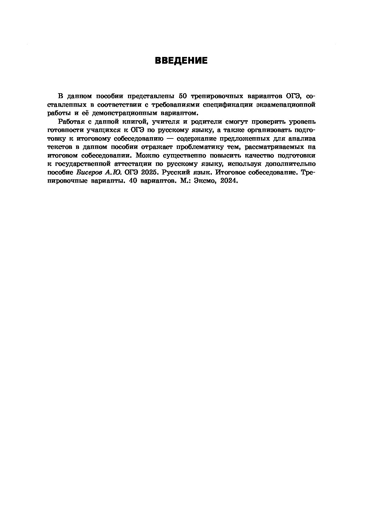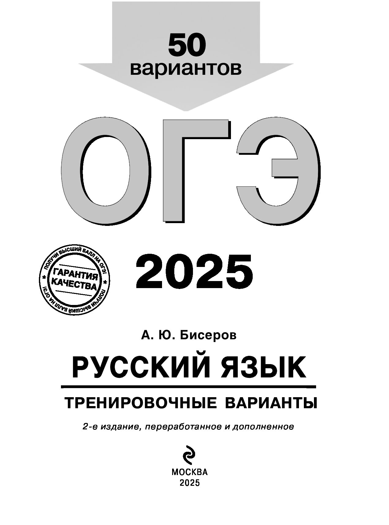 Пособие содержит 50 тренировочных вариантов, соответствующих структуре экзаменационной работы и составленных с учетом требований ОГЭ-2025. Каждый вариант включает задания разных типов и уровней сложности. В конце пособия приводятся ответы.