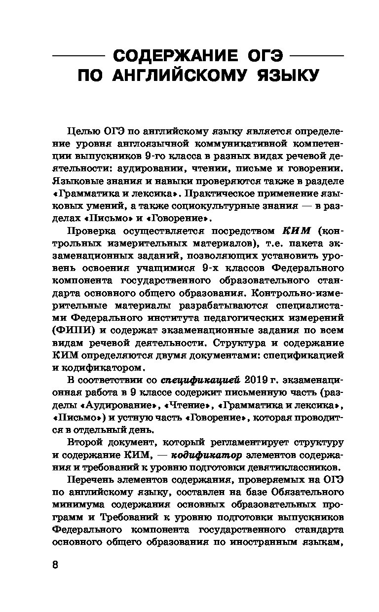 Каждый раздел содержит необходимый языковой материал, образцы экзаменационных заданий и рекомендации по их выполнению. В конце книги дан вариант экзаменационной работы с ключами.