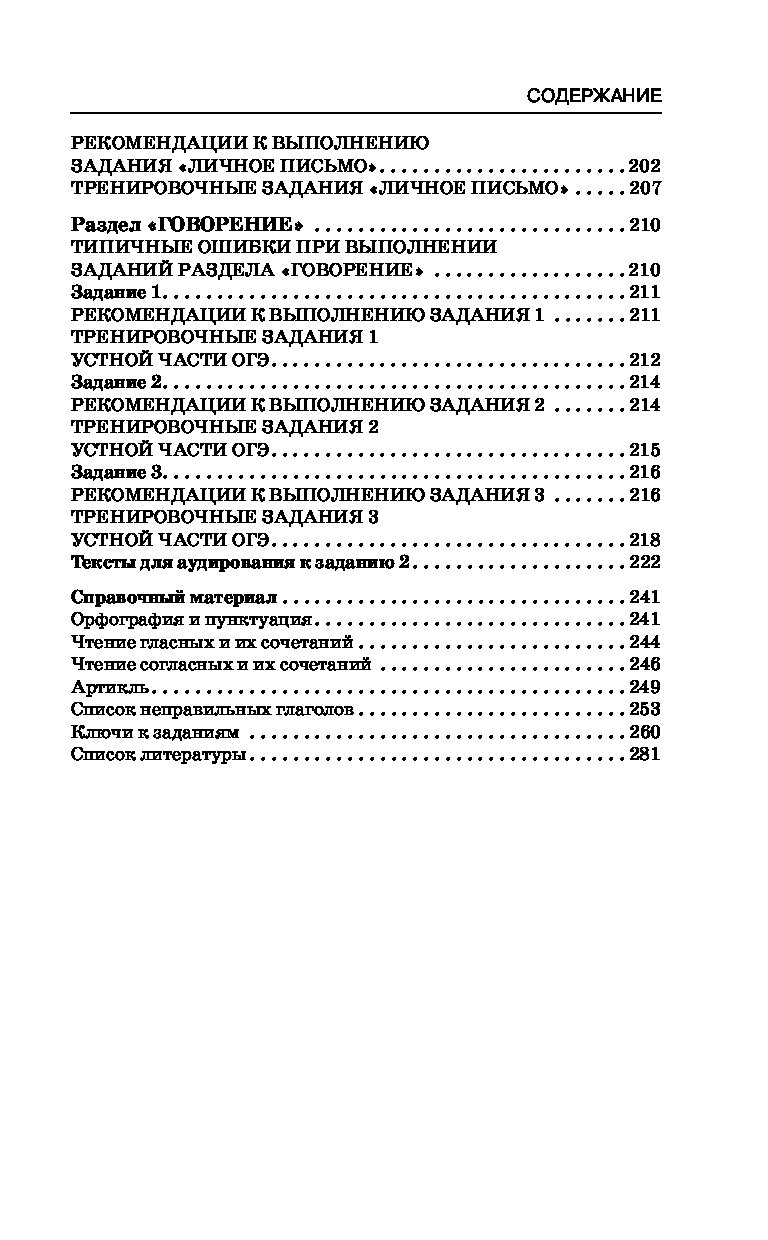 В справочнике представлены все разделы письменной части экзамена: «Аудирование», «Чтение», «Грамматика и лексика», «Письмо» - и его устная часть (задания по говорению).