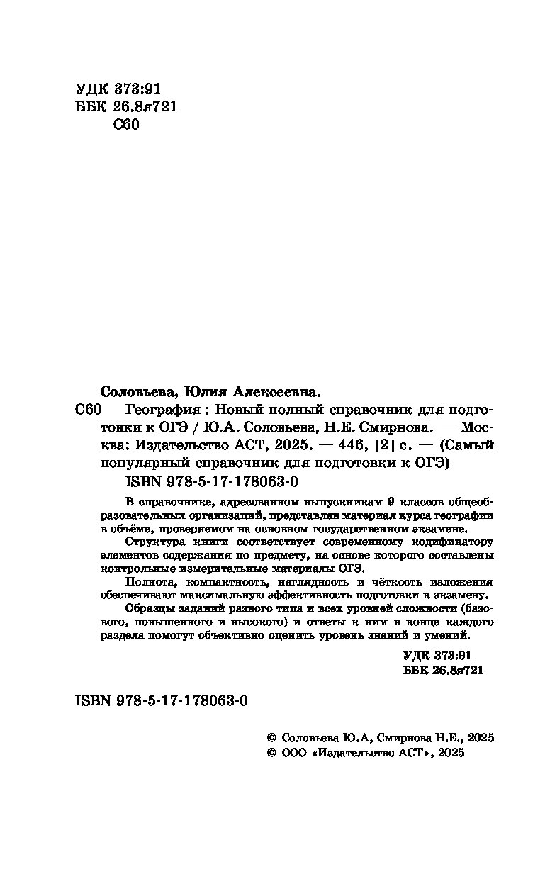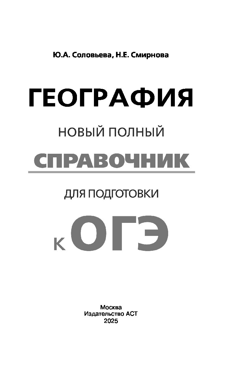 — «ОГЭ. География. Новый полный справочник для подготовки к ОГЭ» Соловьева Ю.А., Смирнова Н.Е.