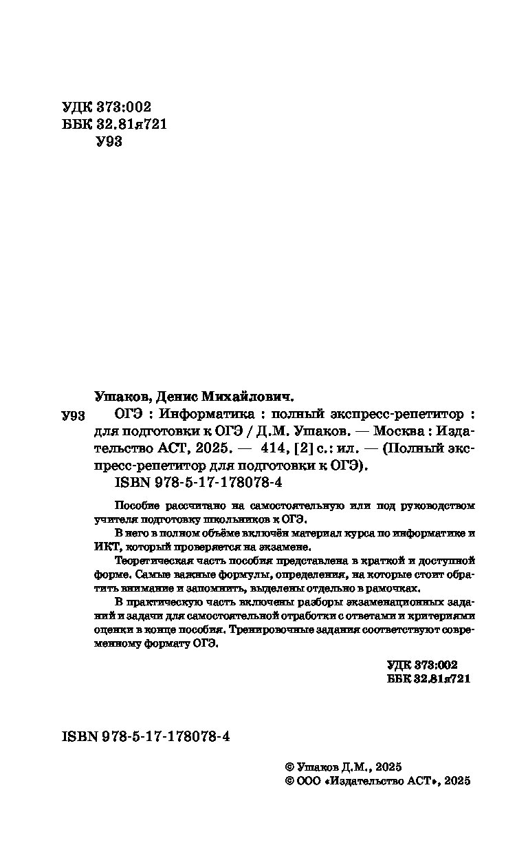 — «ОГЭ. Информатика. Полный экспресс-репетитор для подготовки к ОГЭ» Ушаков Д.М.