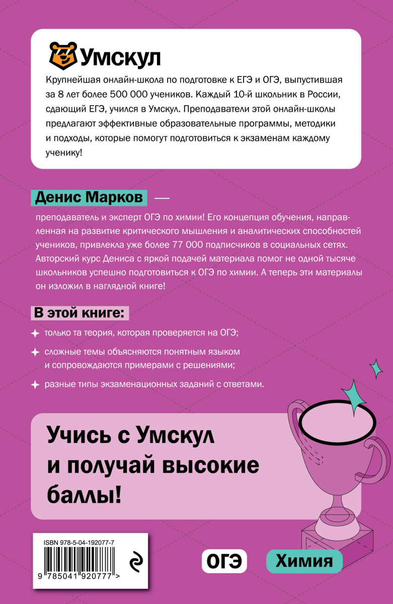 Автор пособия Денис Марков — преподаватель и эксперт ОГЭ по химии, развивающий критическое мышление и аналитические способности учеников! В социальных сетях за ним следят более 77 000 подписчиков!