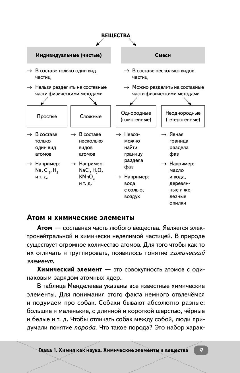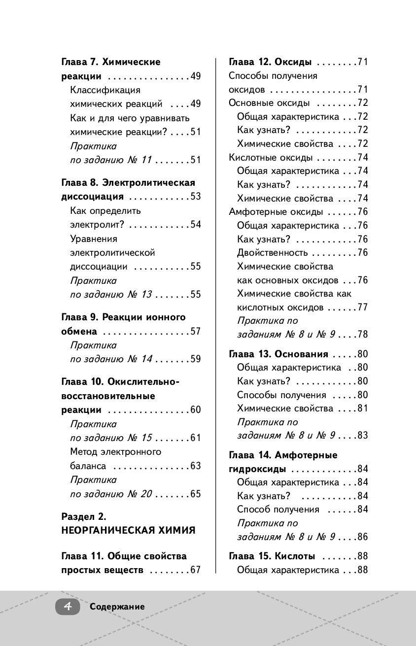 Эта книга разложит по полочкам все темы по предмету за 8—9 классы: вы сможете запросто повторить уже изученный материал, а также проработать не охваченные ранее вопросы. Информация по разделам «Общая химия», «Неорганическая химия» и «Химические задачи» преподносится наглядно и понятно, а также сопровождается примерами химических реакций. Вместе с теорией приводятся тренировочные задания с ответами и пояснениями. Так ни одна важная мысль не ускользнёт от вас во время занятий!