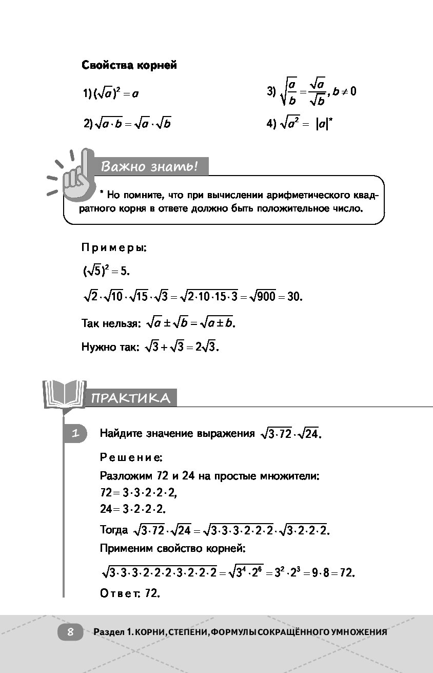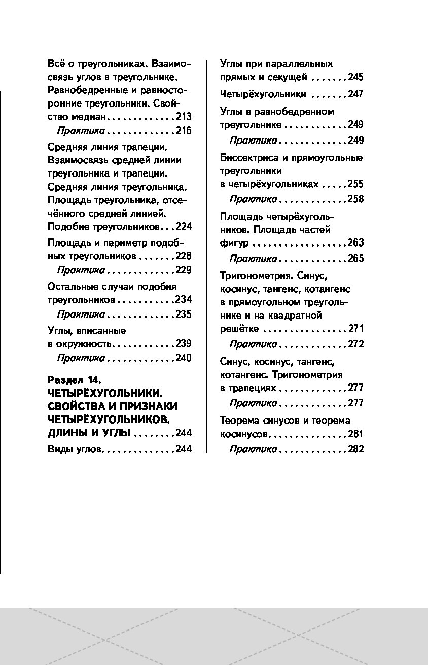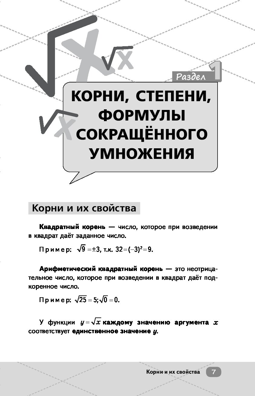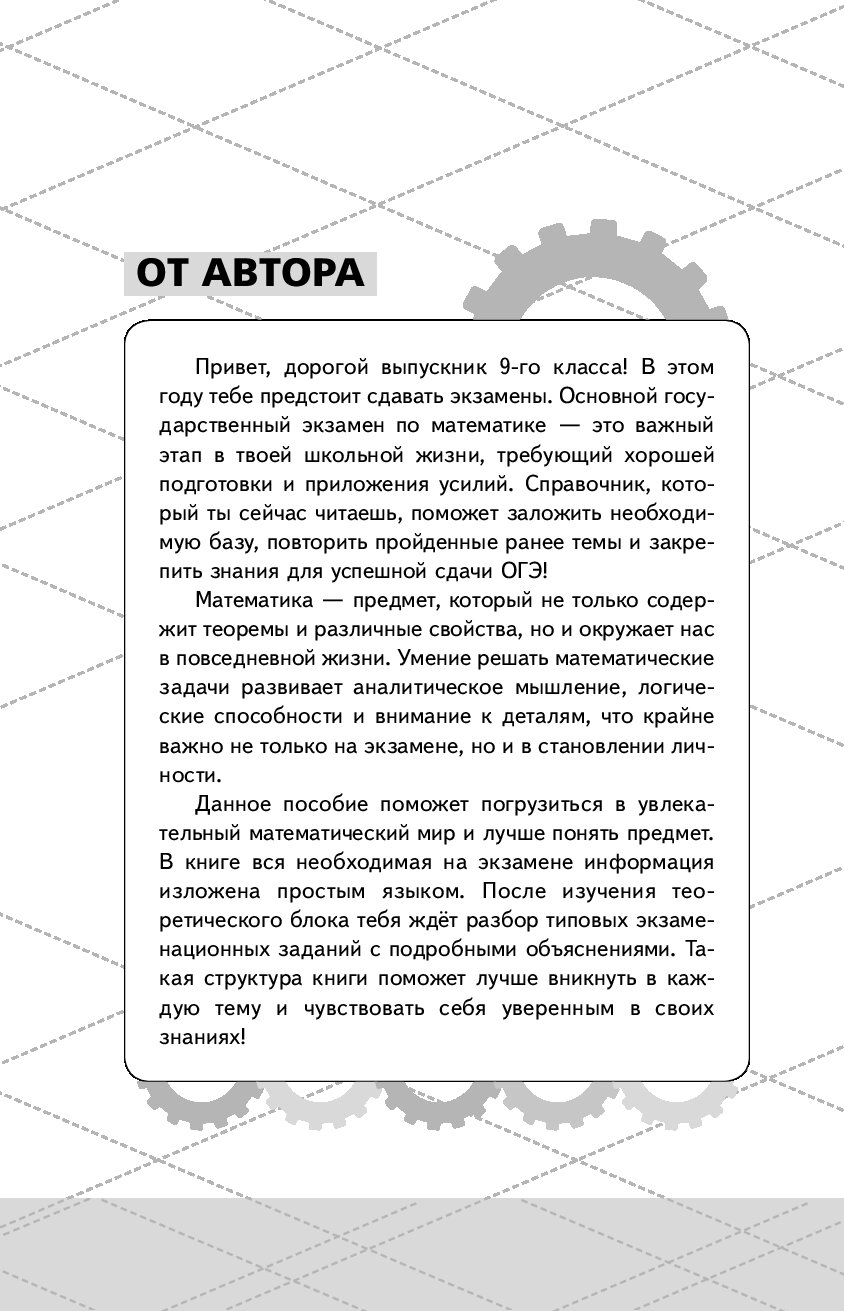 Эта книга разложит по полочкам все темы по предмету за 5—9 классы: вы сможете запросто повторить уже изученный материал, а также проработать не охваченные ранее вопросы. Информация по разделам «Корни, степени, формулы сокращённого умножения», «Неравенства. Логические утверждения», «Уравнения», «Решение текстовых задач», «Теория вероятностей», «Арифметическая и геометрическая прогрессии», «Графики», «Окружность», «Площади фигур. Треугольники» и «Четырёхугольники» преподносится наглядно и понятно, а также сопровождается примерами. Вместе с теорией приводятся разные типы экзаменационных заданий с подробными решениями. Так ни одна важная мысль не ускользнёт от вас во время занятий!